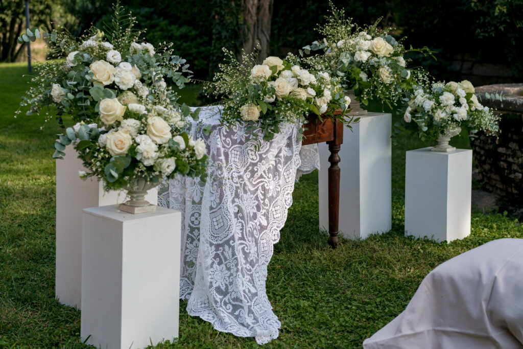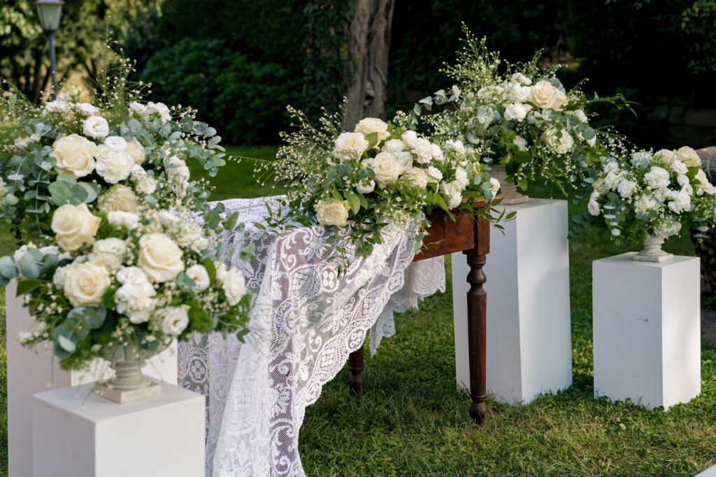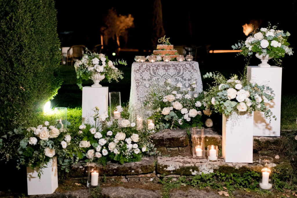 La splendida sala ricevimenti può ospitare matrimoni fino a 115 persone. La terrazza dà sugli splendidi giardini della tenuta, forniti di tensostrutture idonee per banchetti all’esterno. Nel rigoglioso giardino ricco di fiori e piante, è presente anche una meravigliosa piscina.