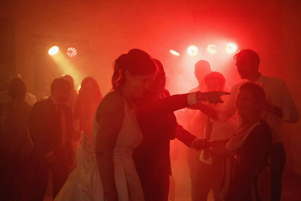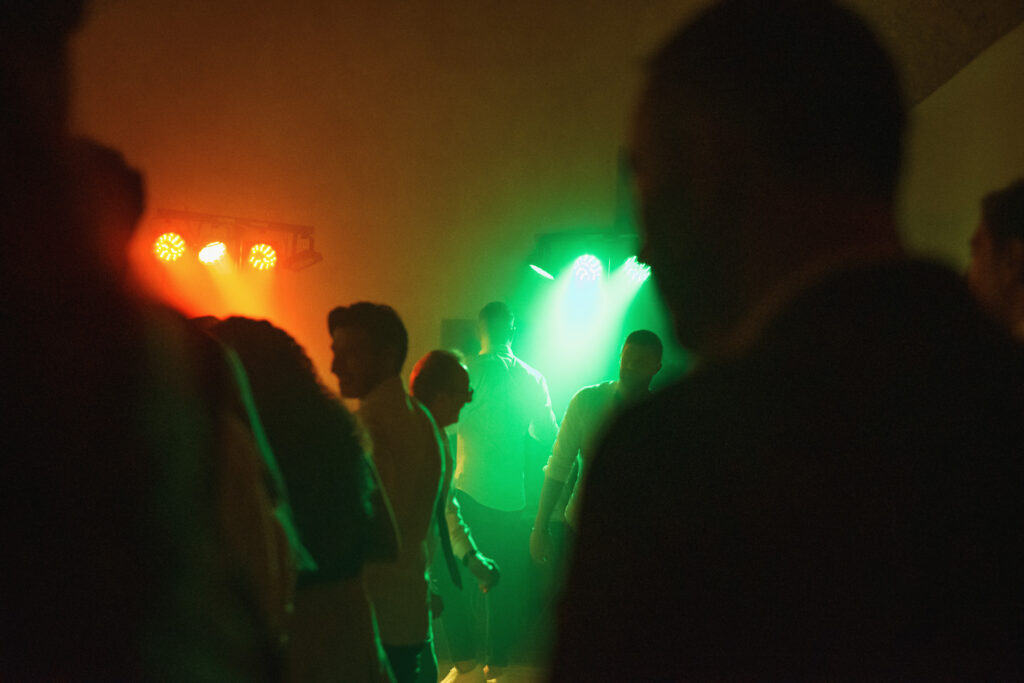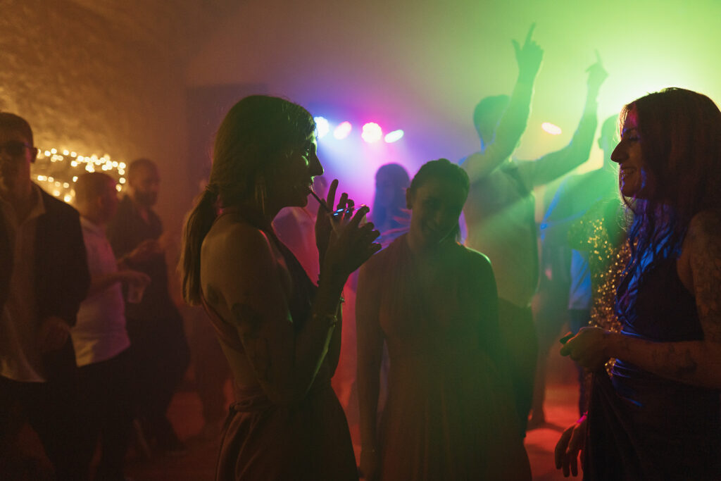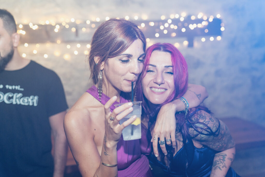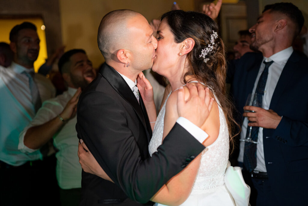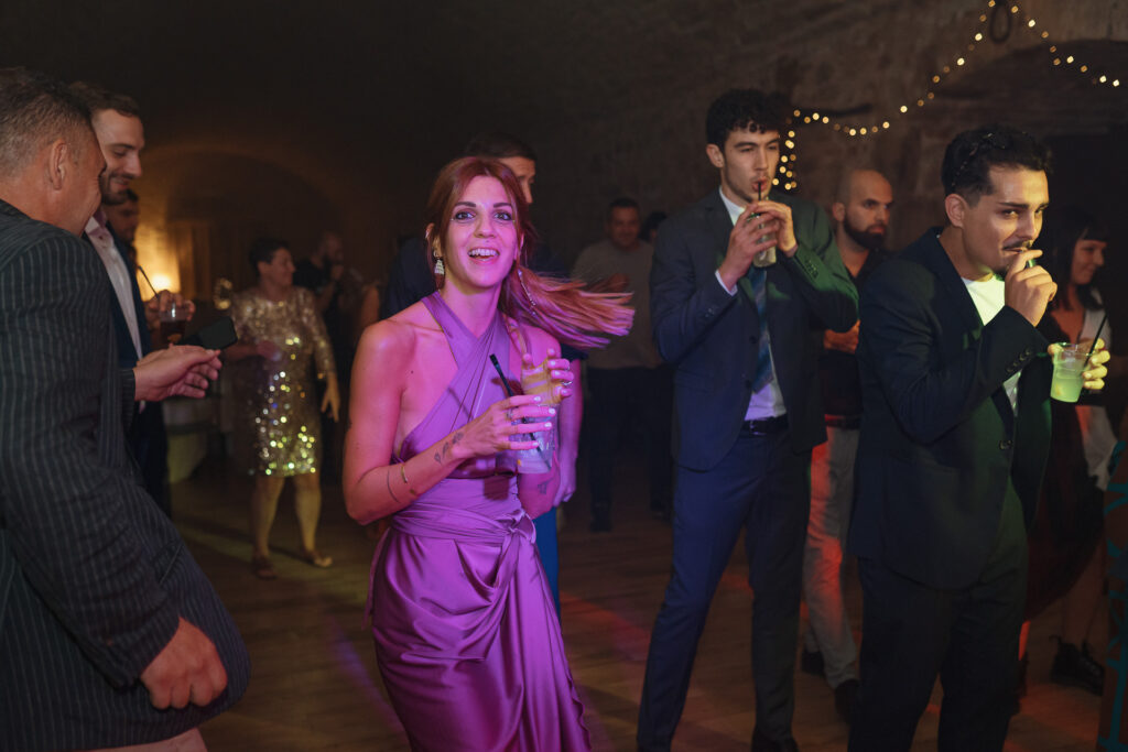From the clearing in the wooded area, the guests moved to the courtyard for a welcome drink and snacks. Here a local band started playing live Italian classics and the wedding was in full swing.