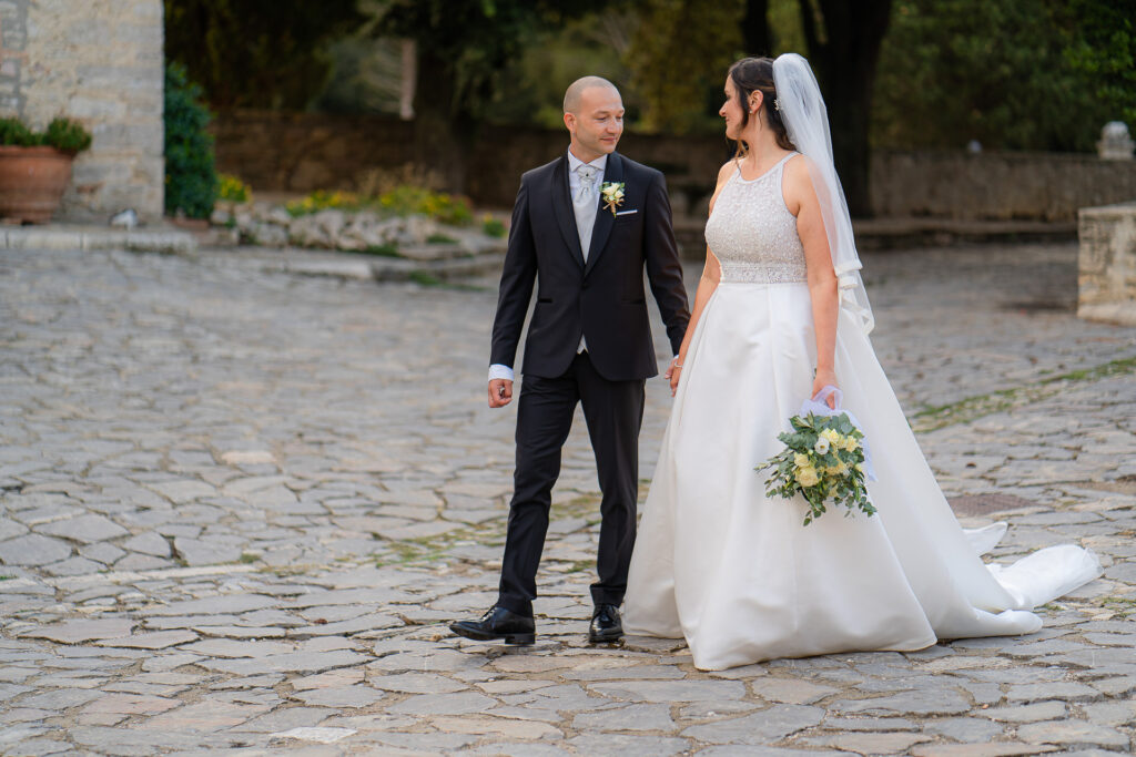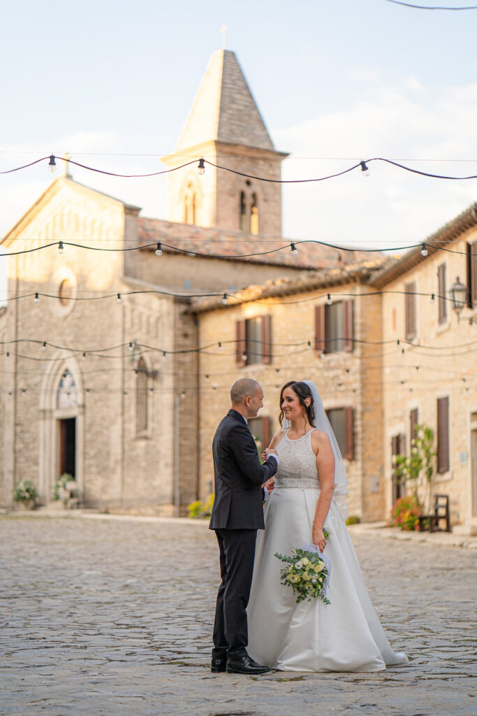 Among the main features of the castle, in addition to the wonderful view of Lake Corbara just mentioned, is the special feature of dining outdoors in a completely empty square. Which makes the ‘atmosphere truly surreal, the bride and groom will be catapulted into a unique atmosphere.