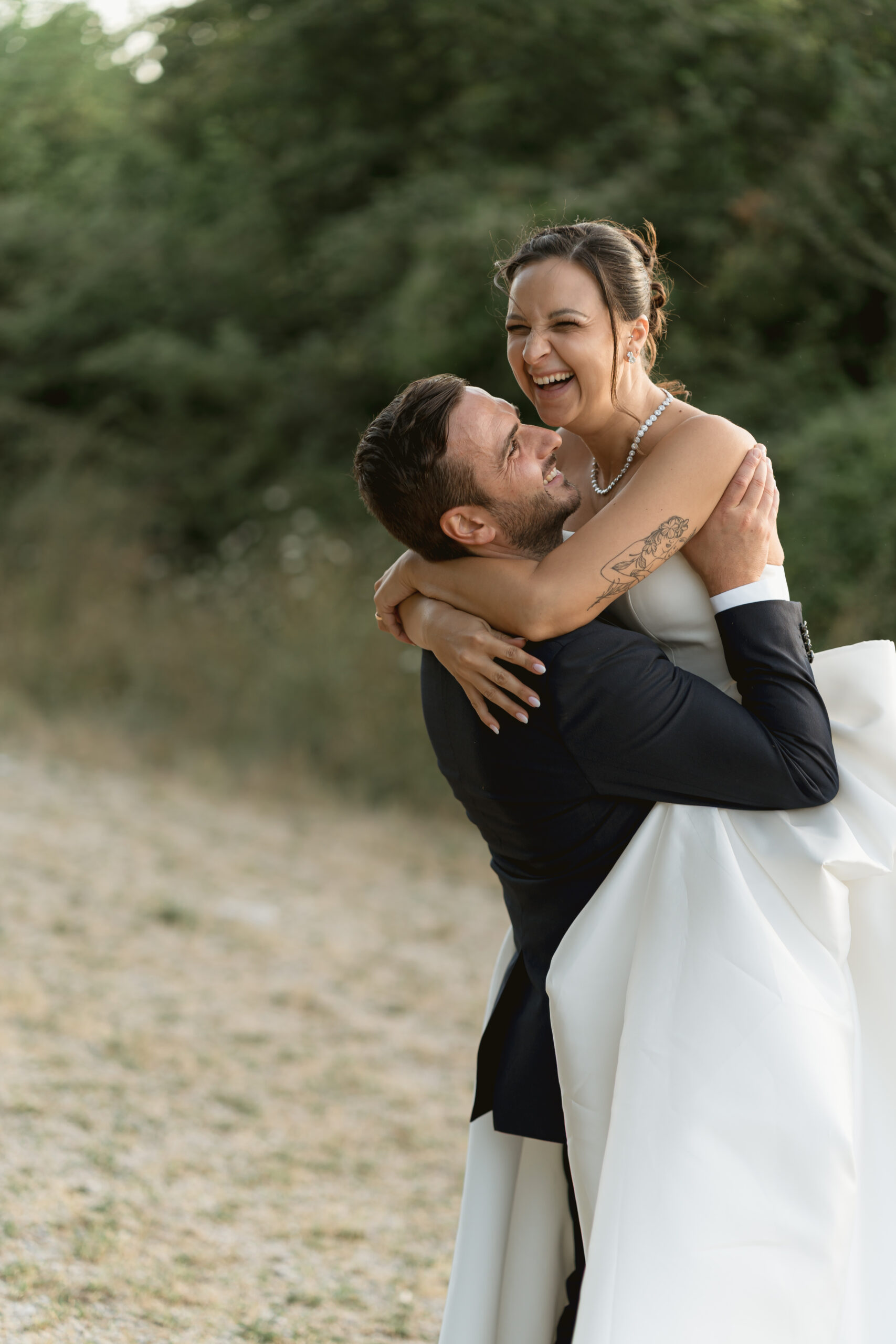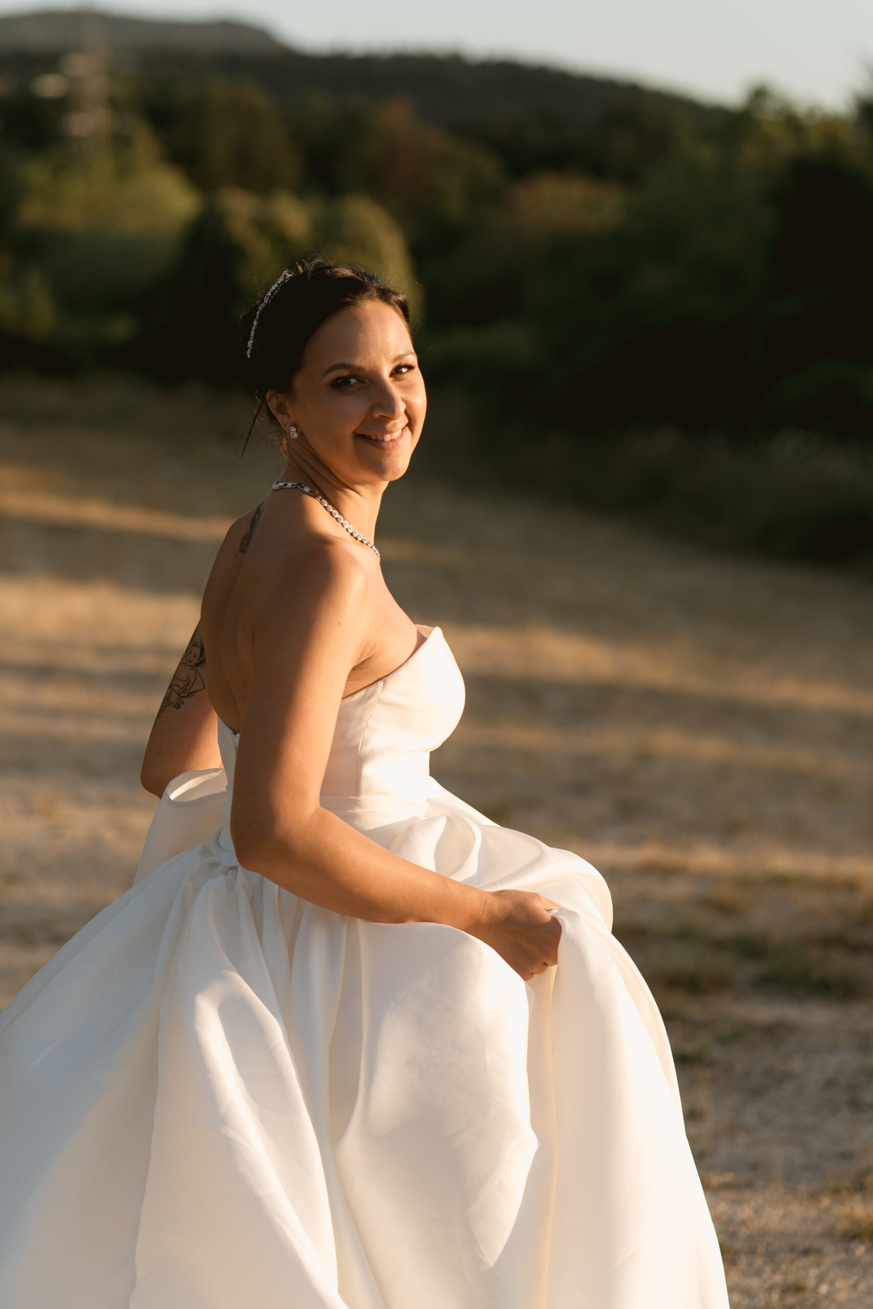A Tenuta La Gramignana, la luce del tramonto e la natura circostante diventano elementi fondamentali per creare immagini poetiche, spontanee e ricche di atmosfera.