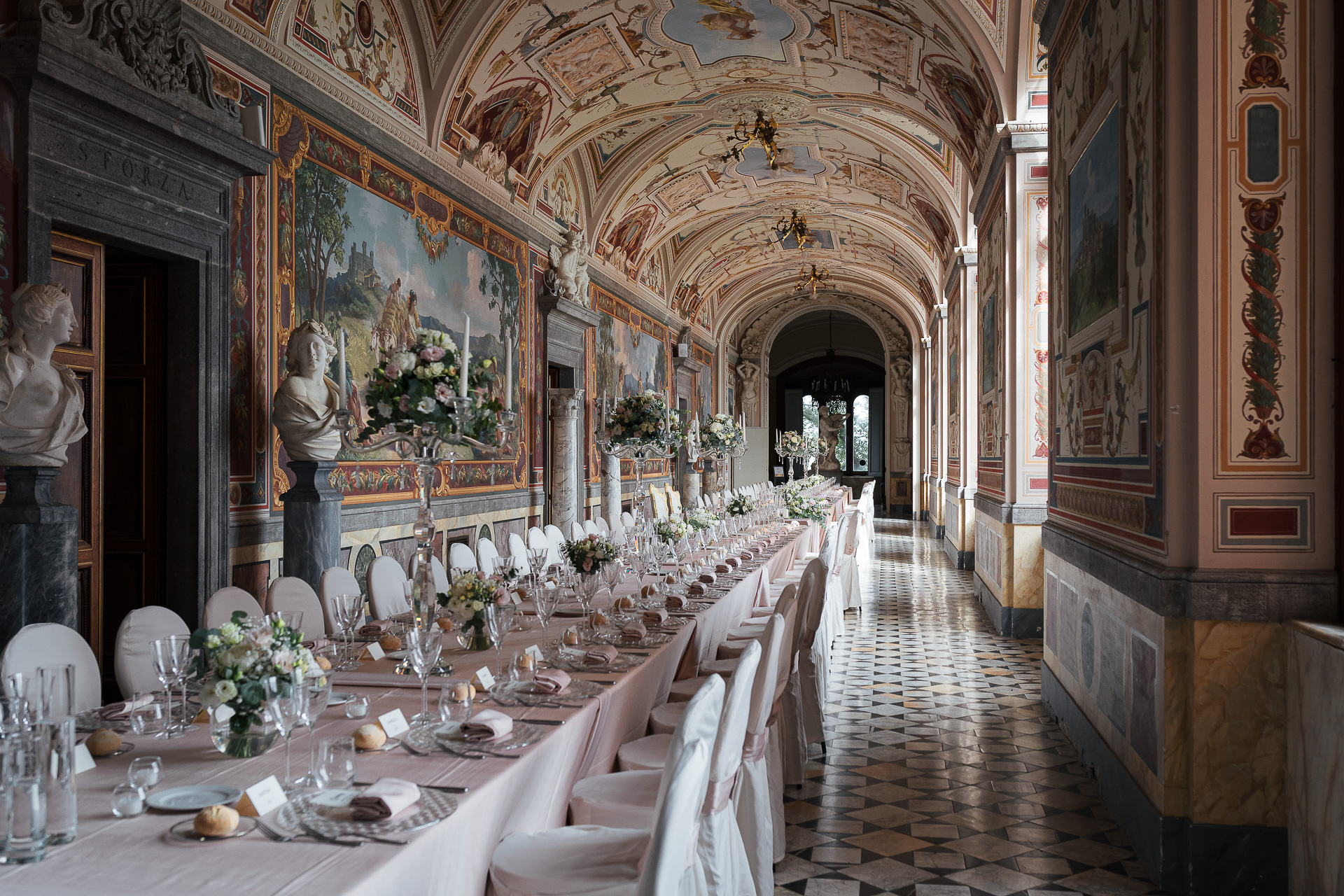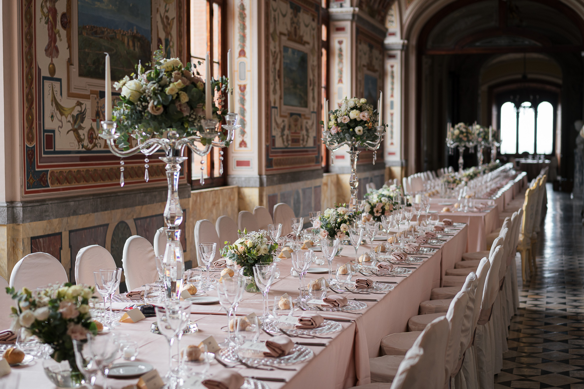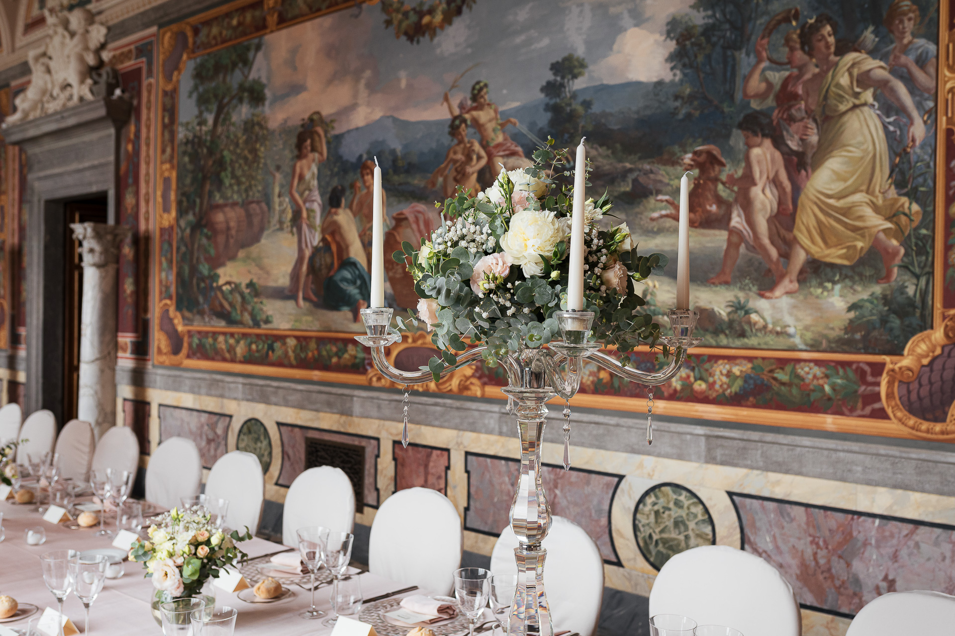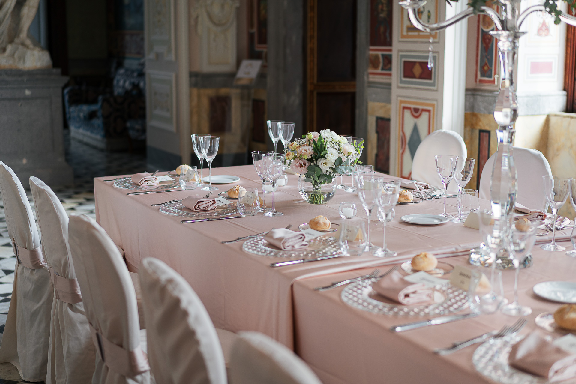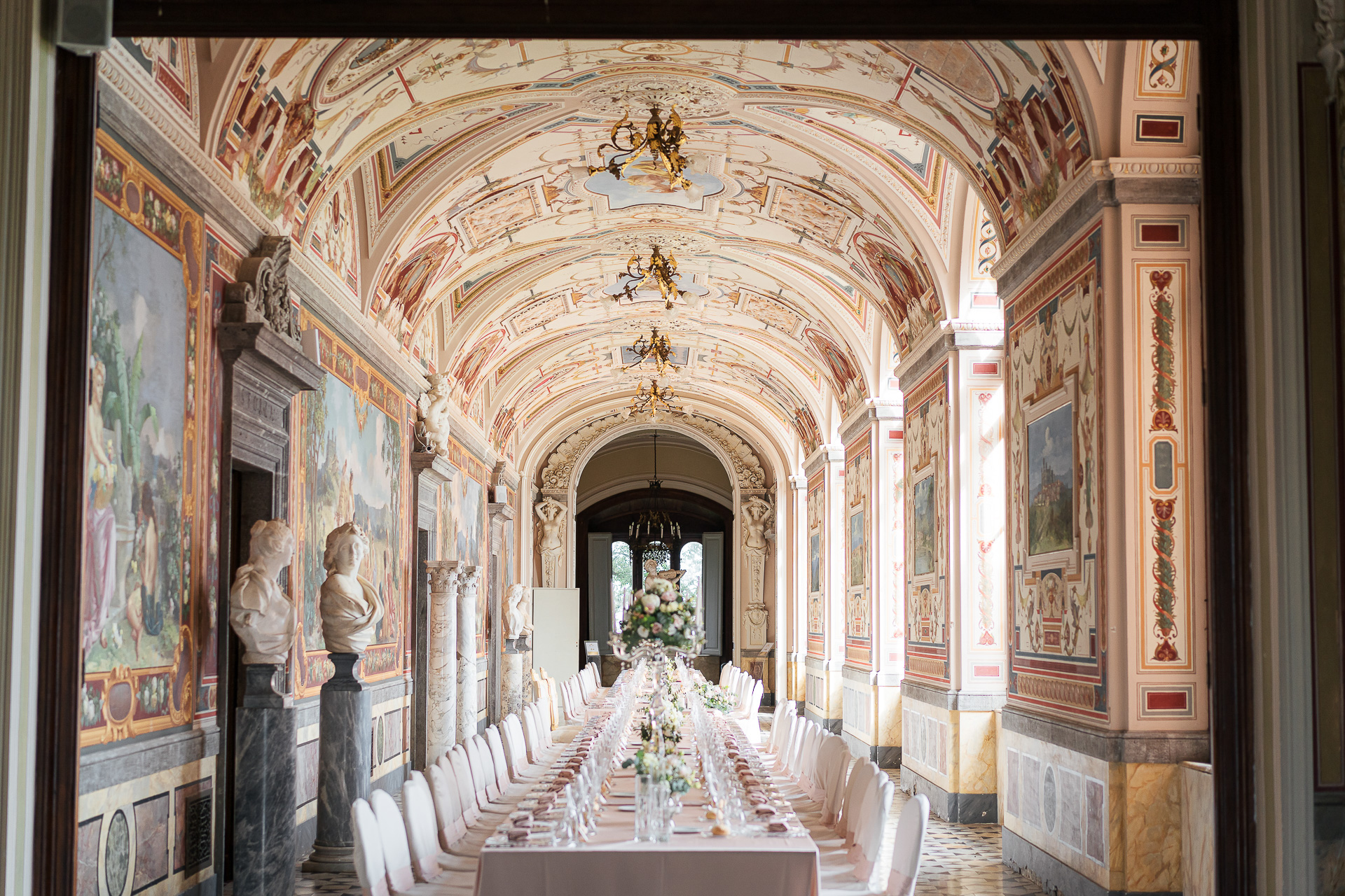 the dining room of the castle is entirely decorated with antique paintings and the imperial table is worthy of a luxury wedding.