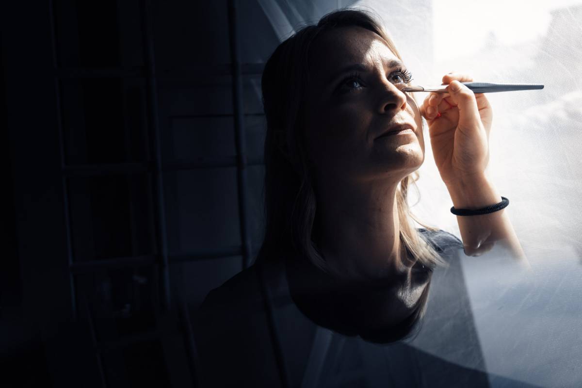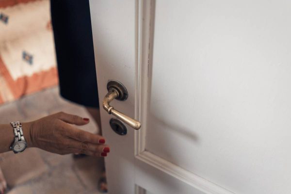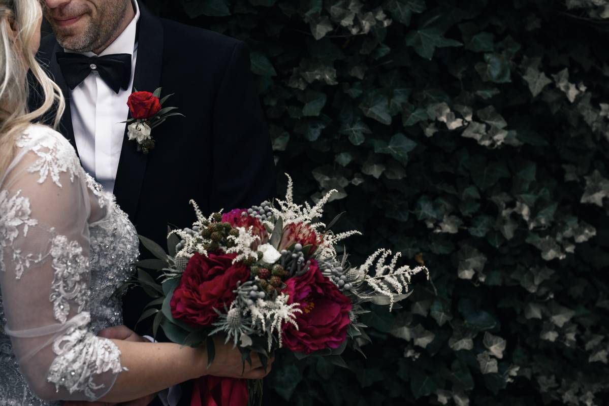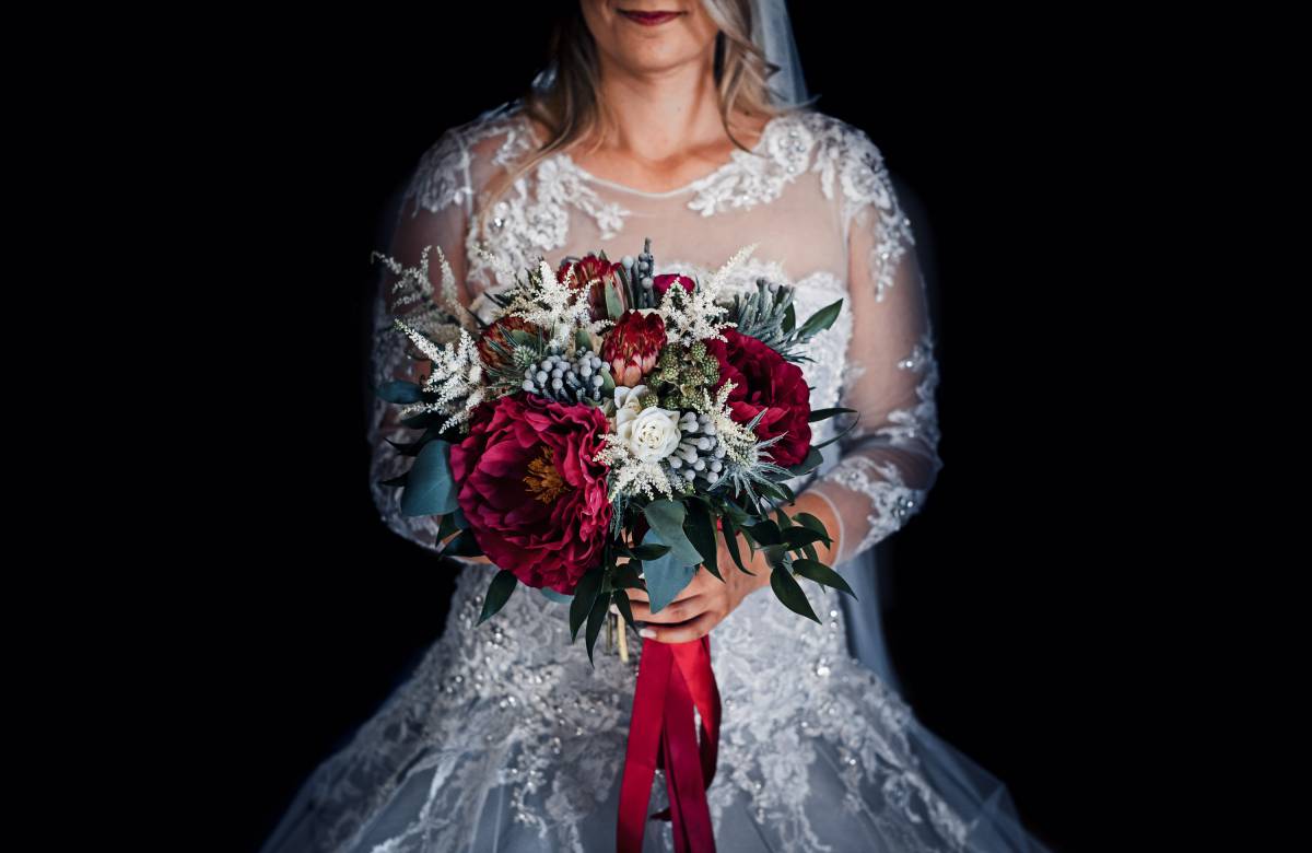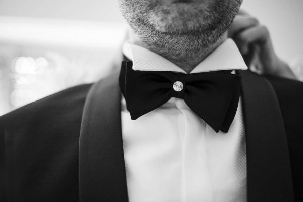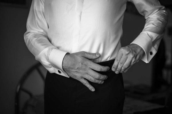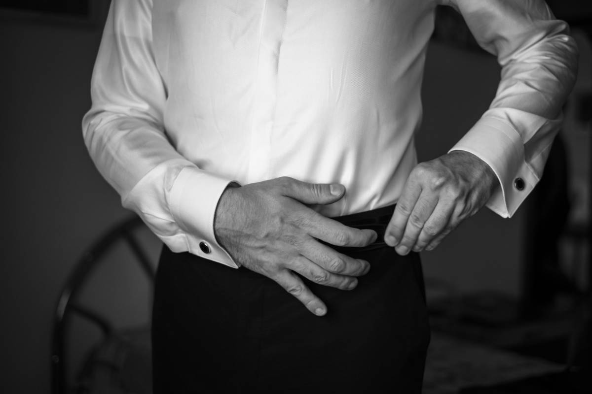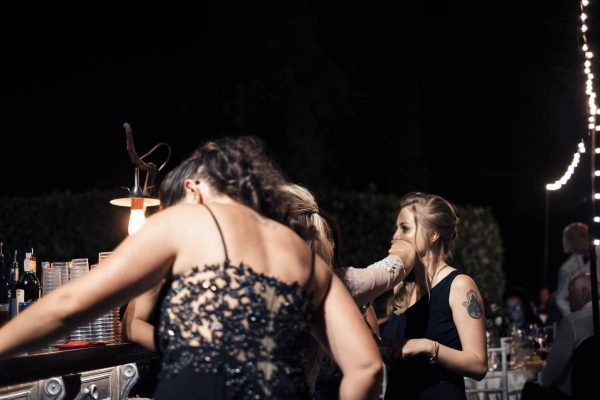 Con alle spalle la cornice naturale e malinconica della chiesa di S. Donato, nella piazza principale della magnifica Civita di Bagnoregio, la perfezione della giornata del matrimonio ha fatto sì che il resto venisse da sé. Il set per la vestizione, deciso di comune accordo, si dotava di pareti bianche, così che il meraviglioso vestito di Erika, dalle tonalità blu-grigiastre, potesse risaltare al massimo delle sue possibilità.