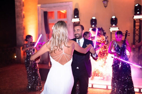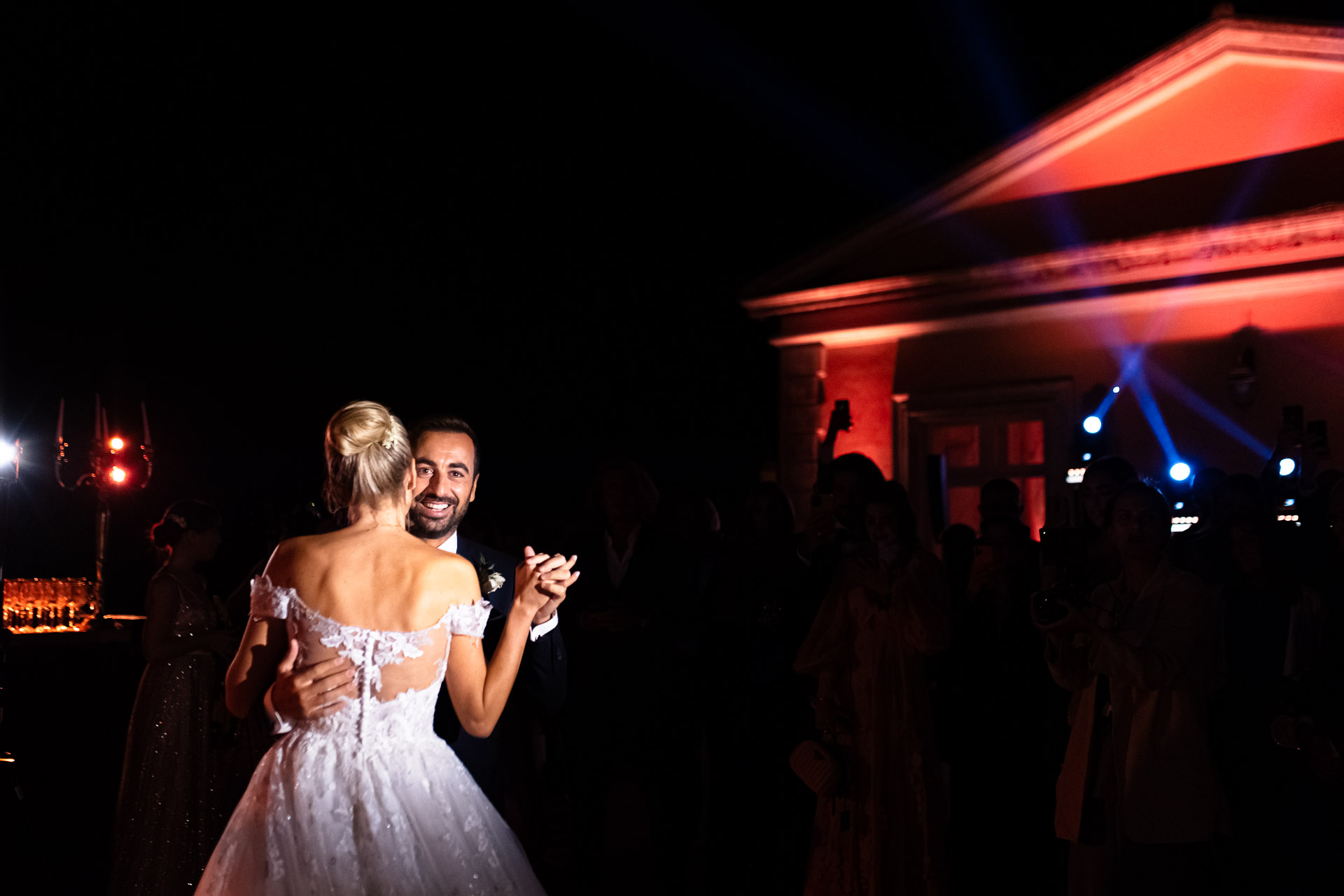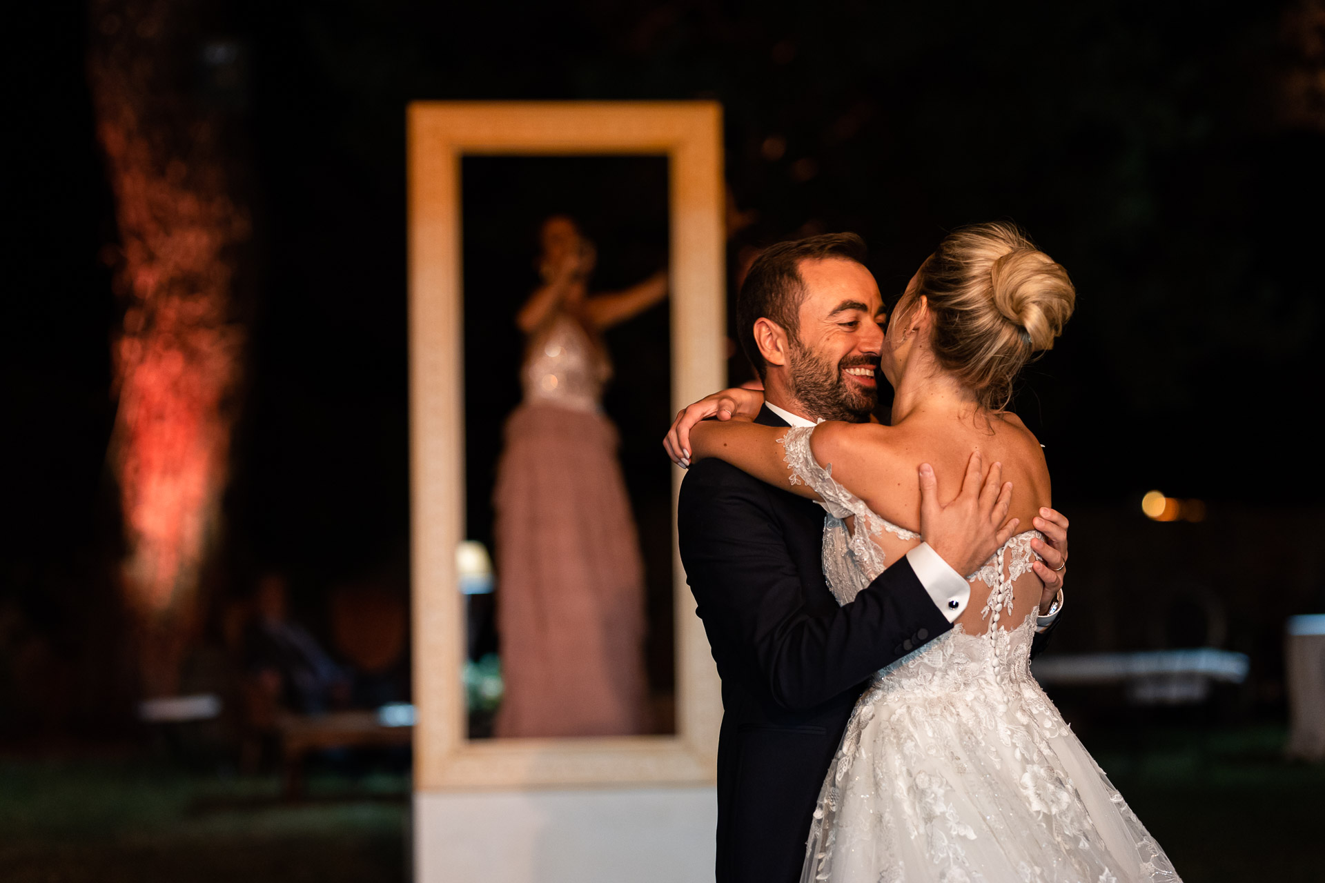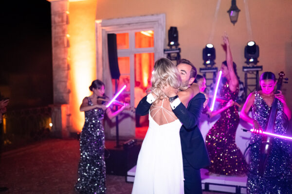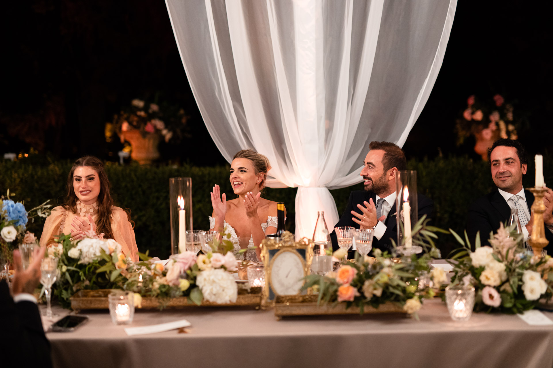 La Location a Palazzo Monaldeschi poco distante da Civita di Bagnoregio, era tutto perfetto, una fiaba in stile parisienne, un atmosfera unica, grazie al lavoro impeccabile di Enoteca LaTorre, Sartoria Floreale i concept musicali e le luci architetturali di Roma Sound Service hanno reso magico questo matrimonio, la Sala per la Cena, i tavoli imperiali, I figuranti, i lampadari, le candele, la “mise en place”, stupenda hanno fatto il resto.