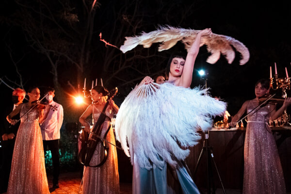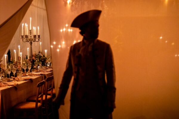 Per me la foto più evocativa, è stata fatta nel Giardino di Palazzo Monaldeschi, una residenza storica, che offre sale in stile barocco, e ampi saloni. La foto in questione è quella con il figurante che sembra dar inizio alla cena, è uno scatto che ho colto, in una frazione di secondo, era li per caso il figurante e girando l occhio, ho visto questa fantastica inquadratura sulla “mise en place”.