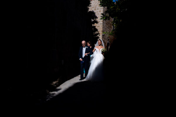 L’entrata in Chiesa è stata così emozionante, V si è anche commossa, mentre camminava, stretta al braccio del suo papà, non staccava mai lo sguardo da F. Dopo il rito, ci siamo presi un pò di tempo per realizzare la parte della You&Me tra gli sorci ed angoletti di Civita Di Bagnoregio.