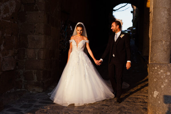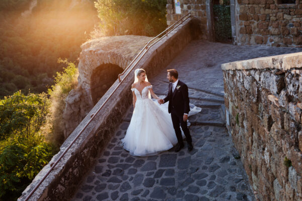 Luxury Wedding in Civita di Bagnoregio, siamo all’ inizio di Settembre, le giornate si accorciano, il caldo dell’estate si fa sentire di meno, uno dei migliori mesi per celebrare un matrimonio. Era una giornata carica di aspettative, ed io scalpitavo dentro di me, per iniziare questo racconto, che sapevo e speravo, sarebbe stato fantastico.