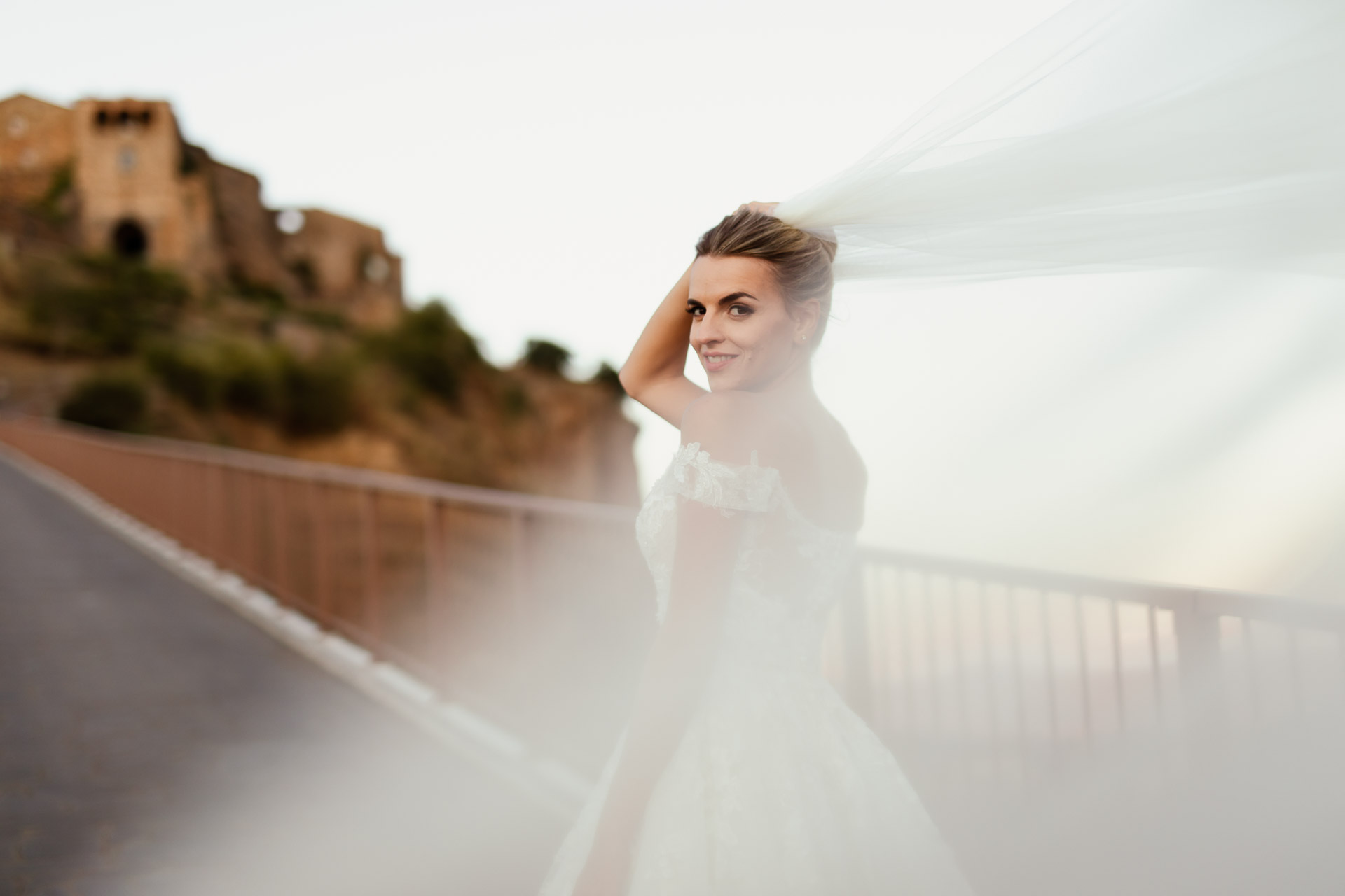 V è una ragazza molto romantica, che ha sempre sognato questo giorno, e lo ha sempre sognato qui, a Civita di Bagnoregio, ricordo le sue storie su Instagram, con sfondo sempre Civita di Bagnoregio.