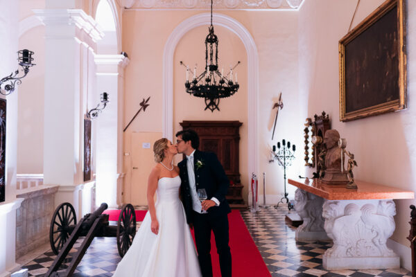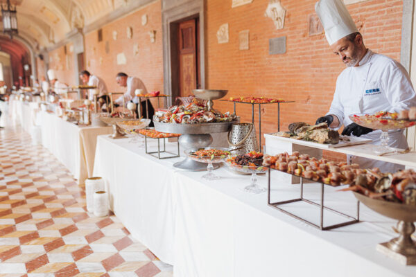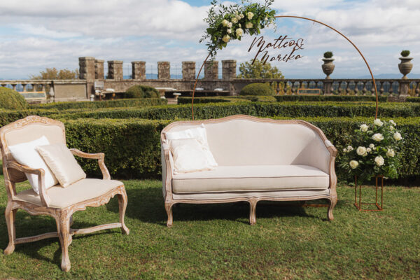 Sino ad arrivare all’elegante cortile interno, perfetto per l’aperitivo di benvenuto, e agli eleganti e curatissimi giardini all’italiana, set ideale per un esclusivo ricevimento all’aperto con vista a 360 gradi sui panorami mozzafiato della campagna umbro-tosco-laziale. Il tutto circondato da mira fortificate, che garantiscono fascino assoluto e, al tempo stesso, totale privacy. Gli interni sono poi impreziositi da mobili d’epoca, bellissimo allestimento per un Matrimonio Castello Torre Alfina, preziosi stucchi, marmi ed affreschi che renderanno il ricevimento ancora più fiabesco in ogni stagione.