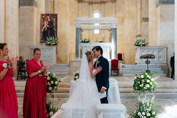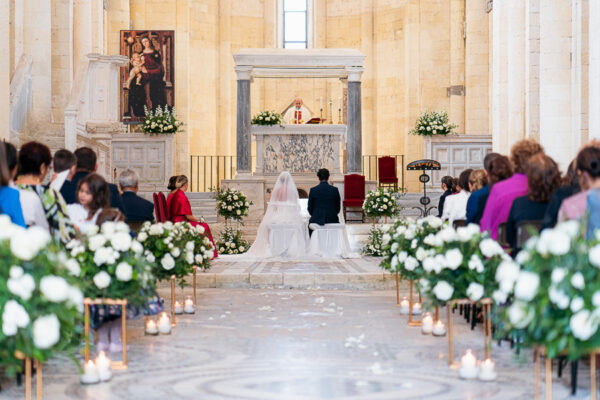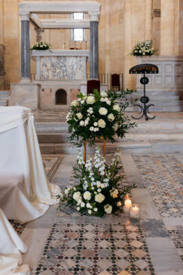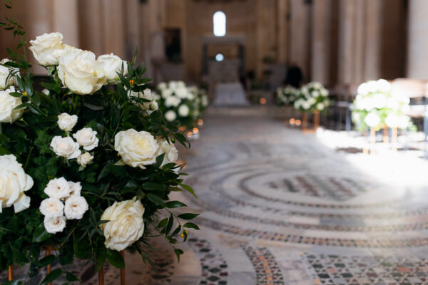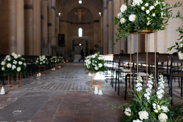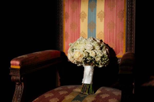 Sedie Luigi XVI per evitare le ormai inflazionate sedute rivestite con minigonna trapuntata bianca; oppure le chiavarine in stile vintage o le parigine bianche o oro, per disimpegnare un po’ l’insieme. E ancora allestimenti floreali e candelieri classici a segnare i punti focali della location ed i suoi angoli d’élite. Pochi elementi, pochi colori, spesso meglio una scelta monocromatica per un luogo già prezioso e ricco di sé, onde evitare il rischio too much.