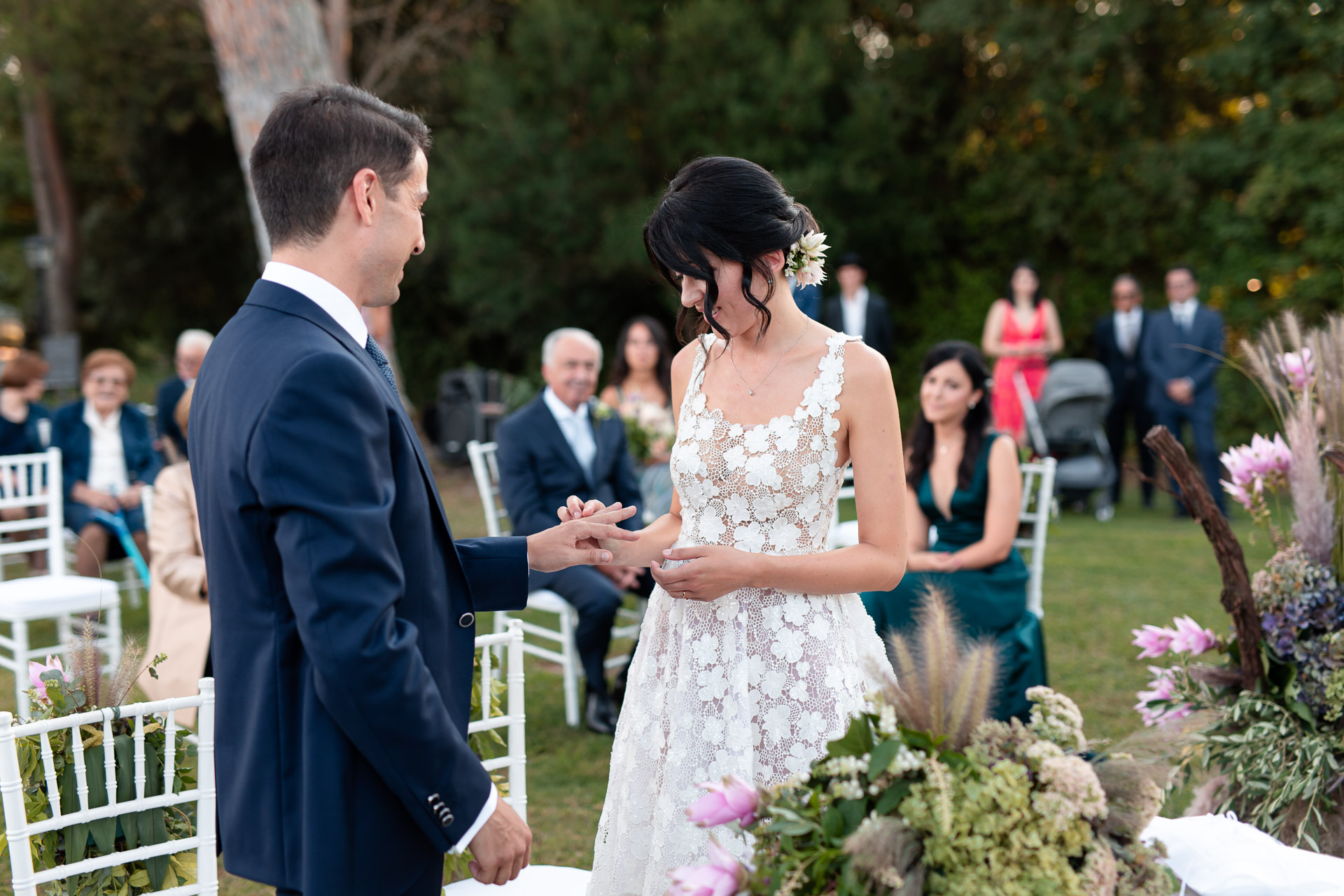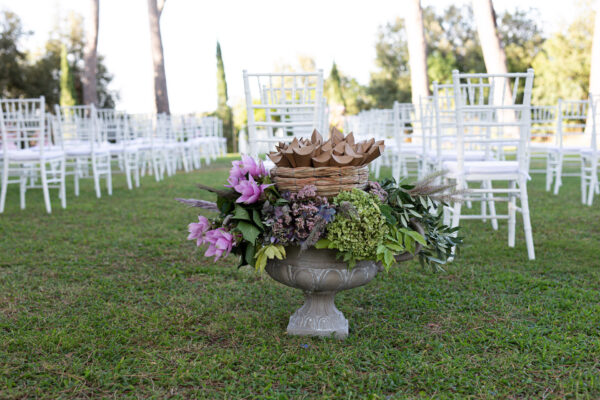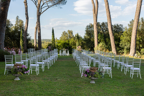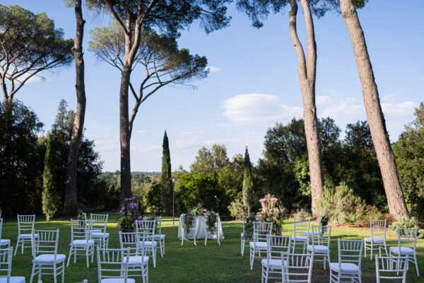 il matrimonio Convento di San Francesco, è un matrimonio bellissimo , semplice e curato nei particolari degli allestimenti floreali di Rose Rosse, un flowers designer di Viterbo, negli spazi verdi sotto pini maestosi con le sedie più belle, le chiavarine.