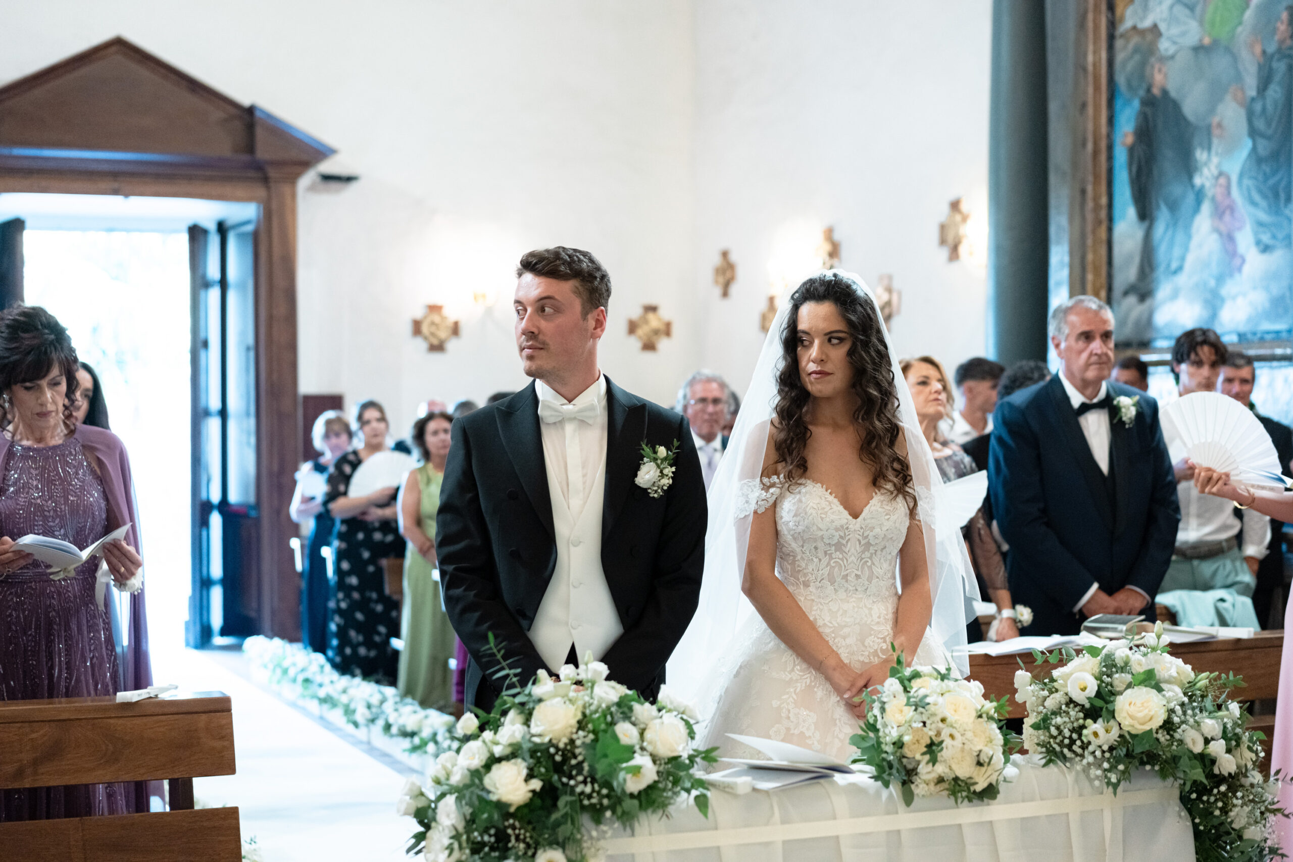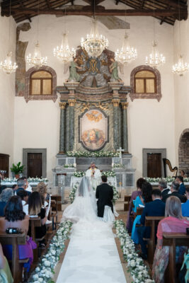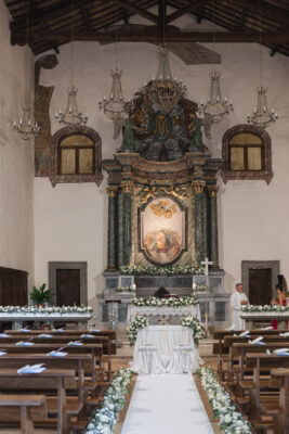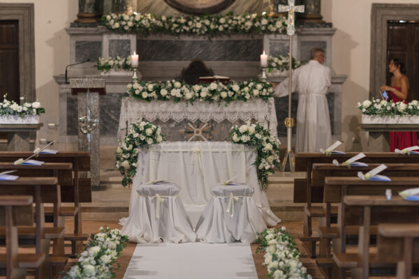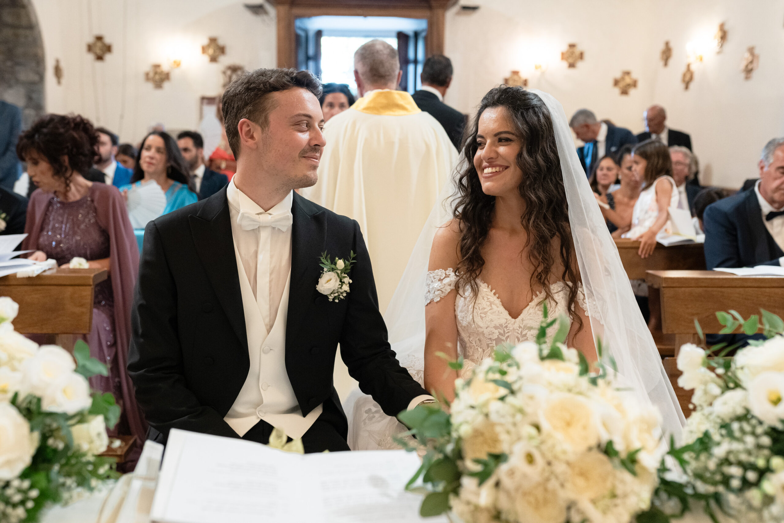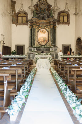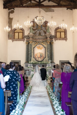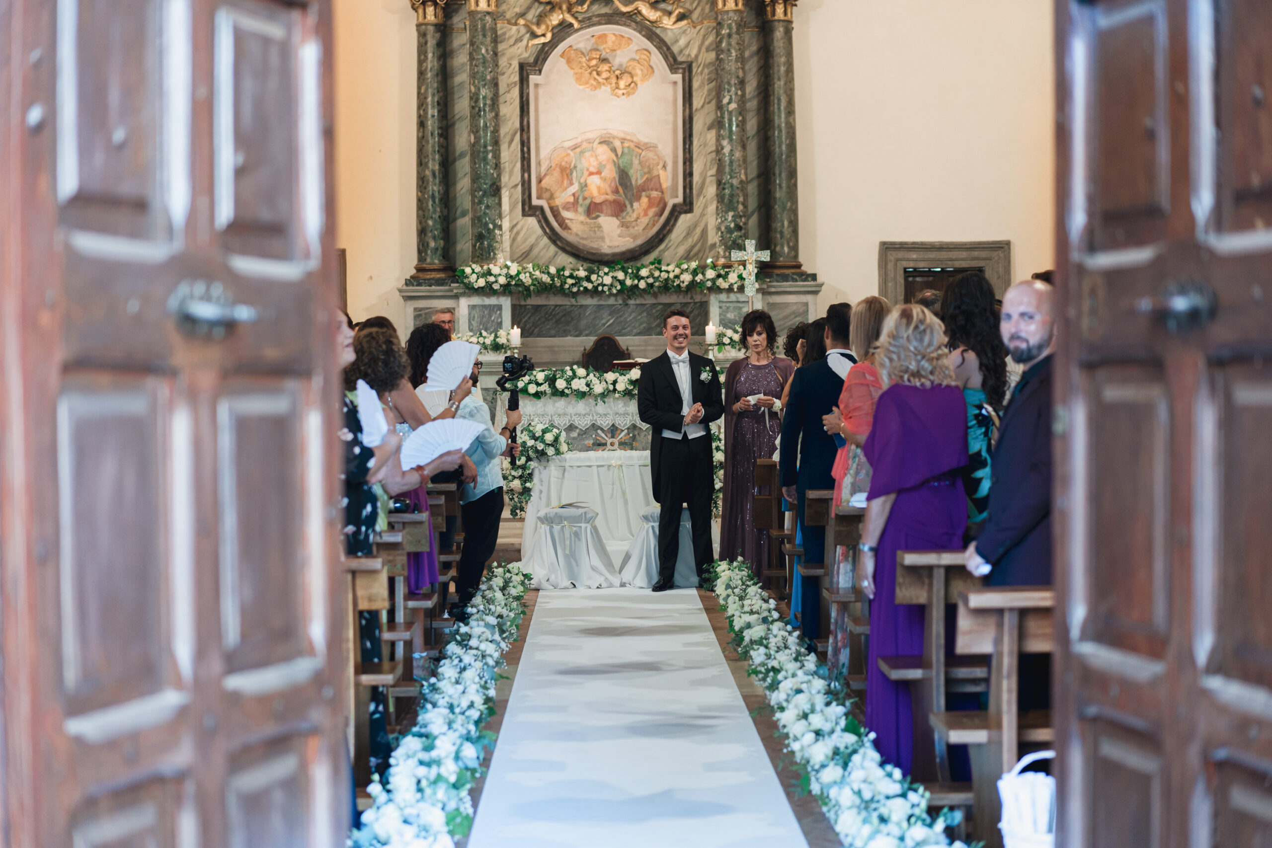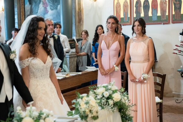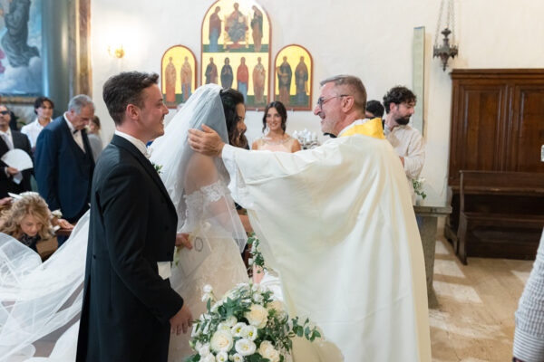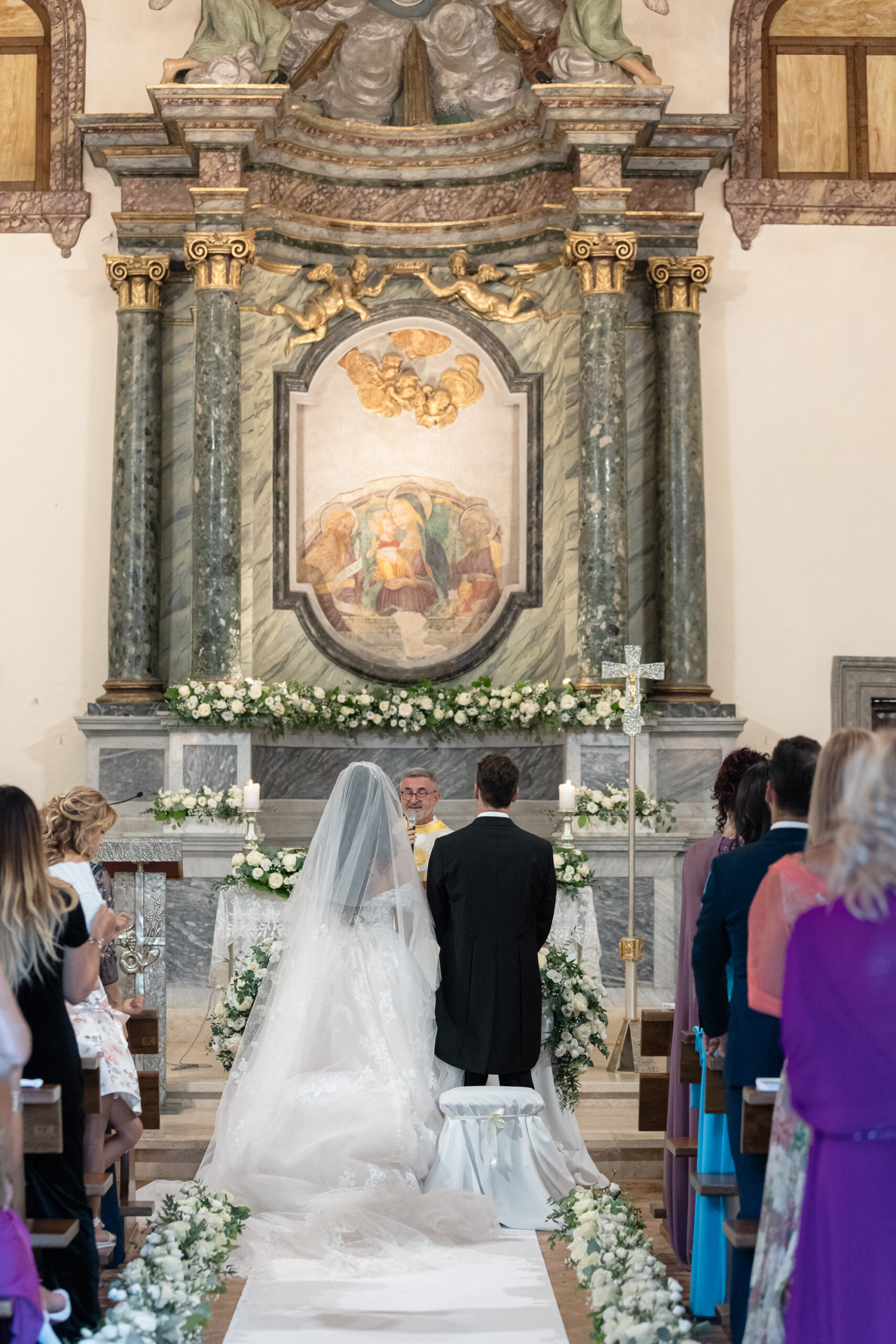 Le vestizioni hanno scelto di farle a casa, per poi incontrarsi alla Chiesa di Marta, molto elegantemente curata e con gli Allestimenti di Simona (@weddingflowerallestimenti) con rose e peonie bianche. il rito fissato per le 16e30, molto presto perché dovevamo poi avere un pò più di tempo per le foto e gli spostamento degli ospiti all’ isola, dato che dovevamo imbarcarci!…. che spettacolo!!!