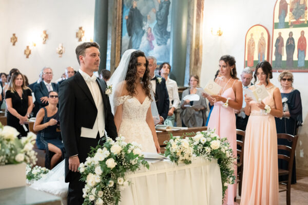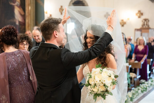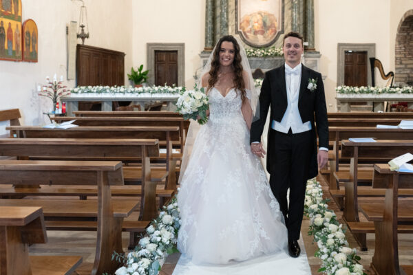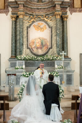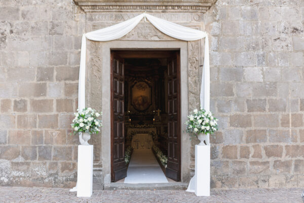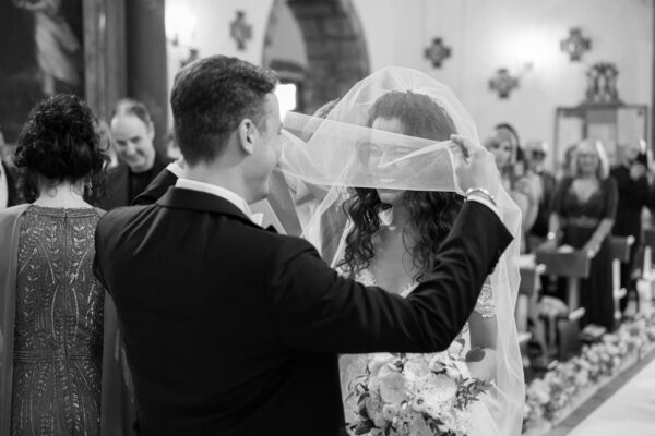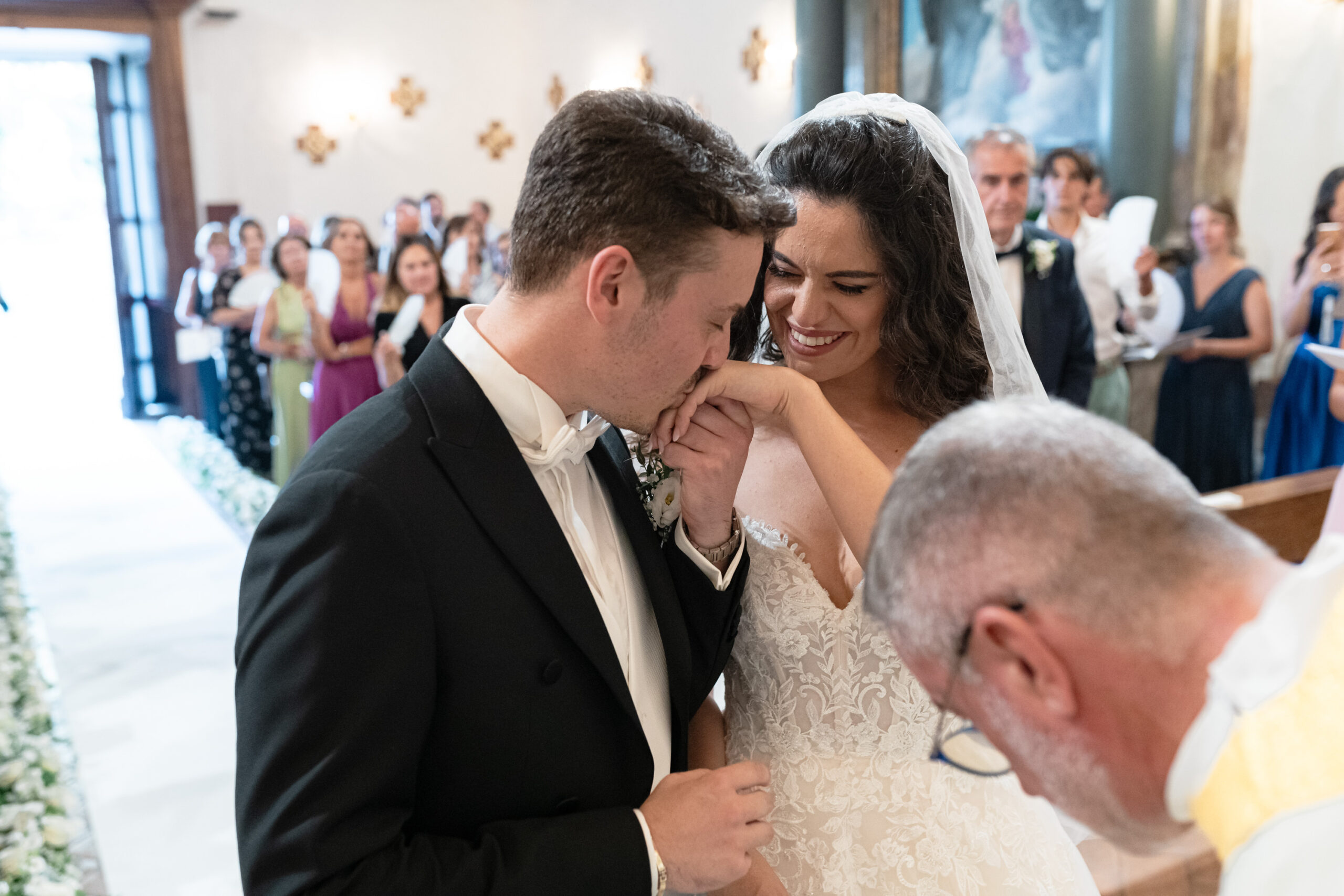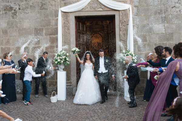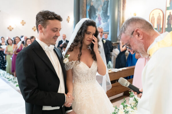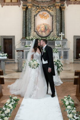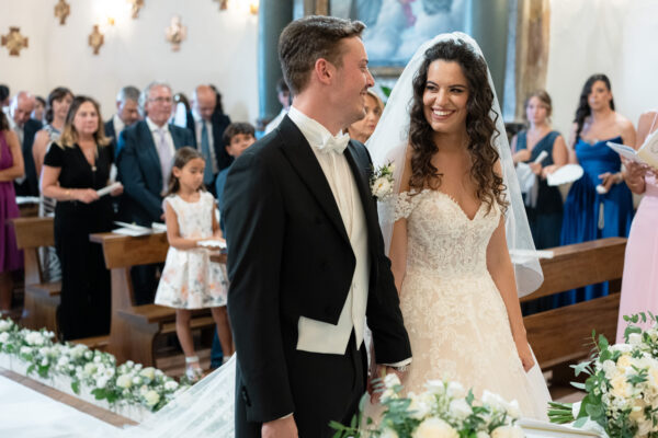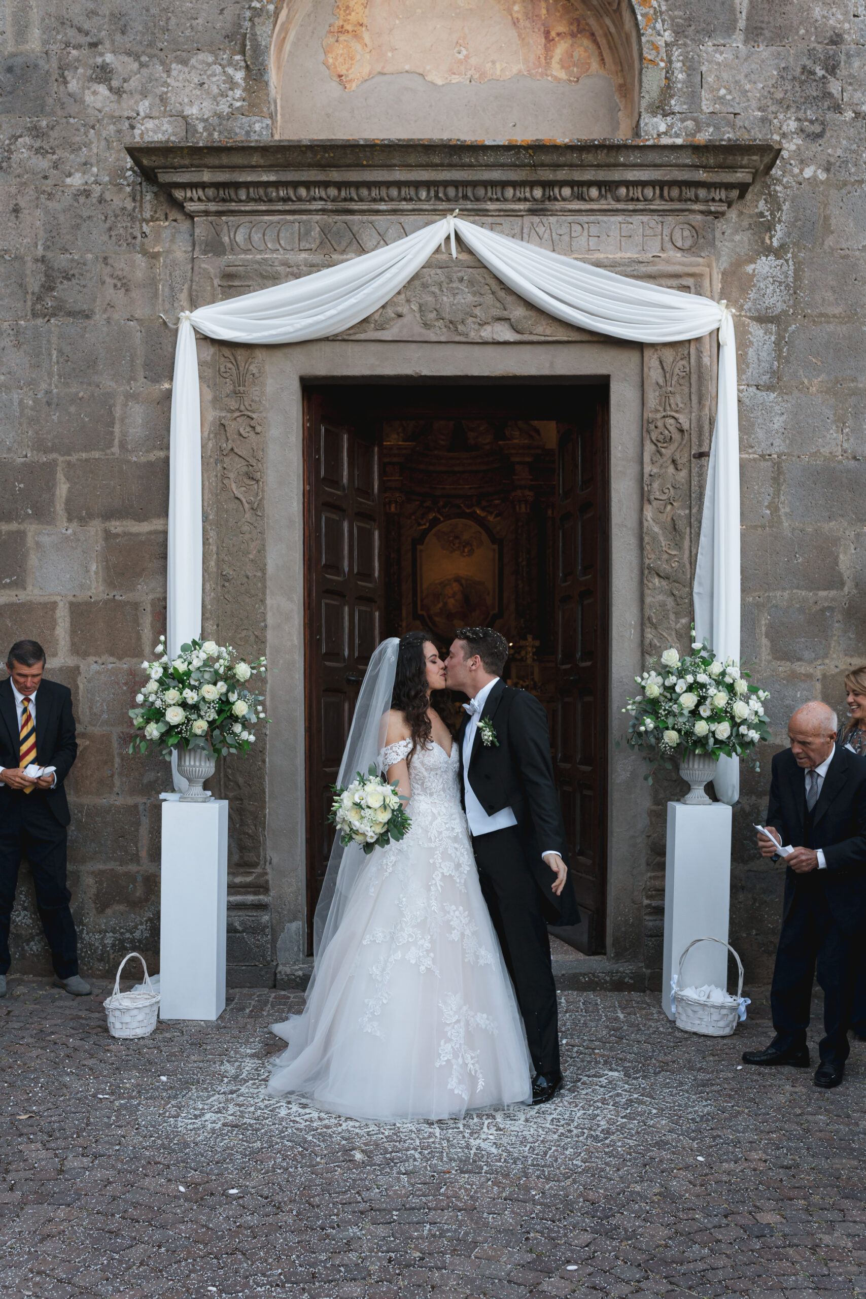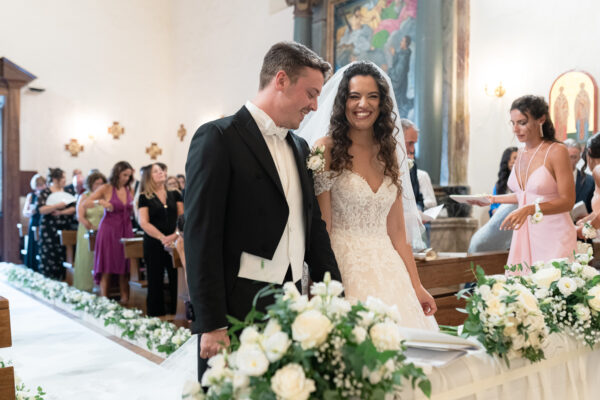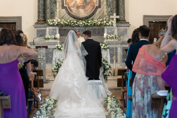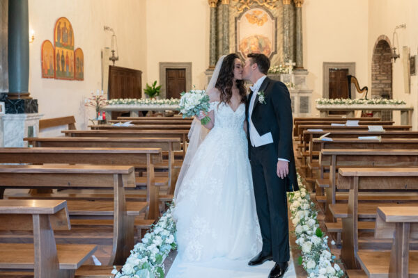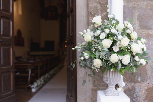 Le vestizioni hanno scelto di farle a casa, per poi incontrarsi alla Chiesa di Marta, molto elegantemente curata e con gli Allestimenti di Simona (@weddingflowerallestimenti) con rose e peonie bianche. il rito fissato per le 16e30, molto presto perché dovevamo poi avere un pò più di tempo per le foto e gli spostamento degli ospiti all’ isola, dato che dovevamo imbarcarci!…. che spettacolo!!!