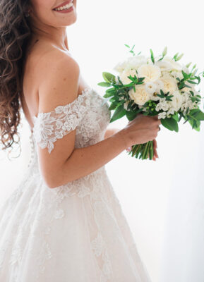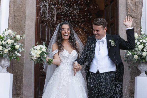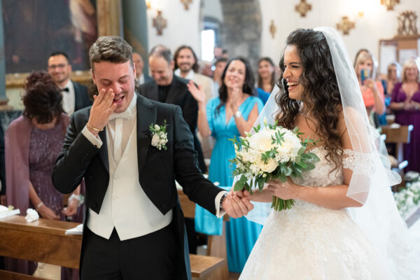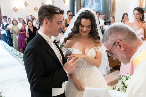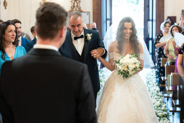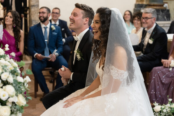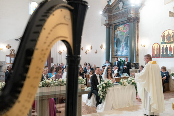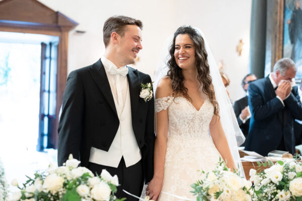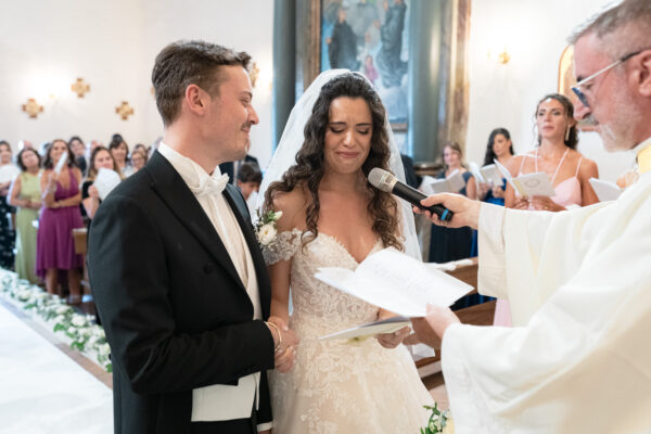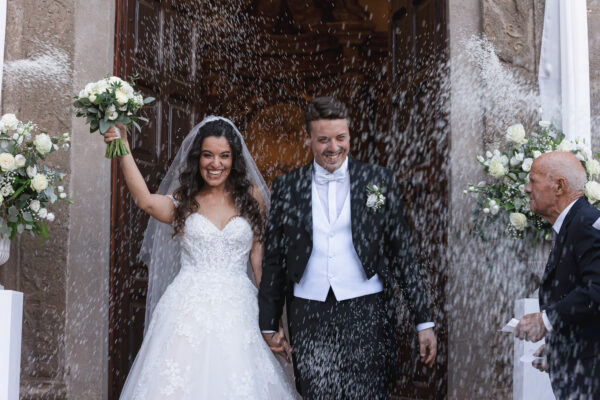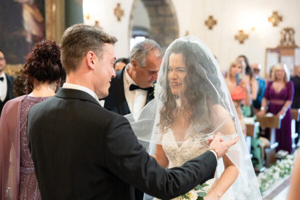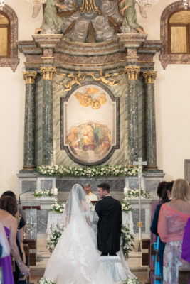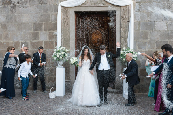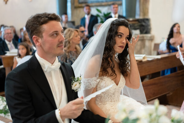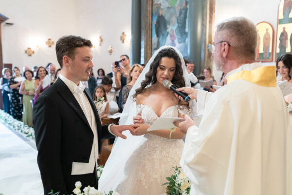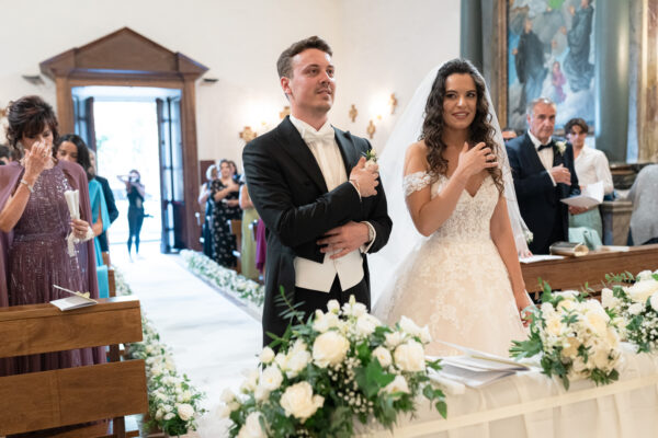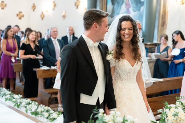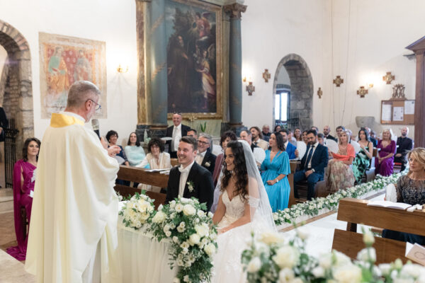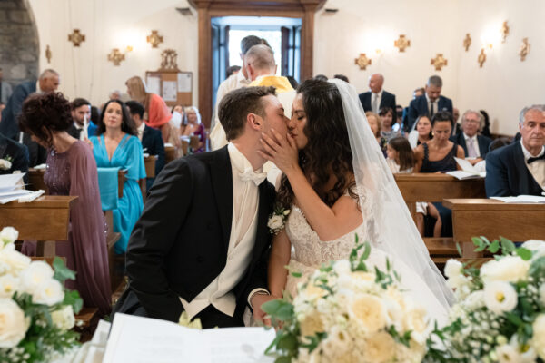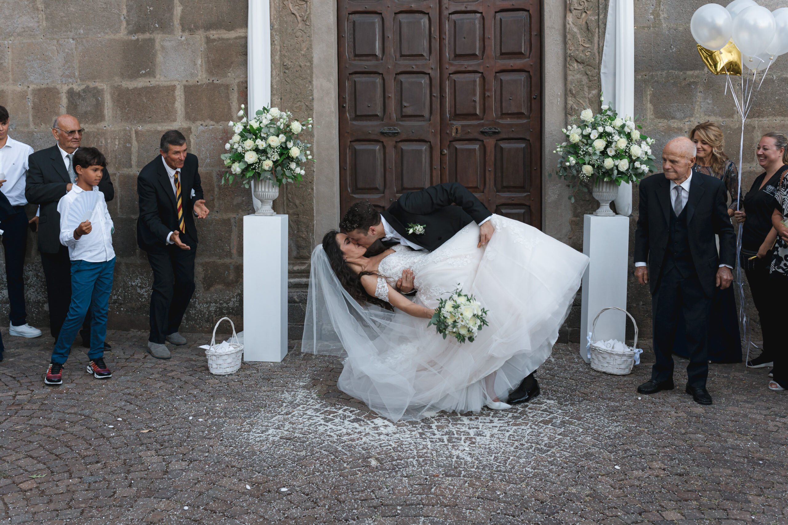 Le vestizioni hanno scelto di farle a casa, per poi incontrarsi alla Chiesa di Marta, molto elegantemente curata e con gli Allestimenti di Simona (@weddingflowerallestimenti) con rose e peonie bianche. il rito fissato per le 16e30, molto presto perché dovevamo poi avere un pò più di tempo per le foto e gli spostamento degli ospiti all’ isola, dato che dovevamo imbarcarci!…. che spettacolo!!!