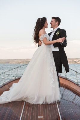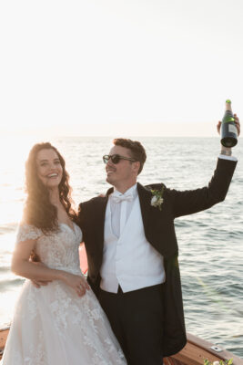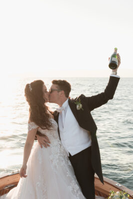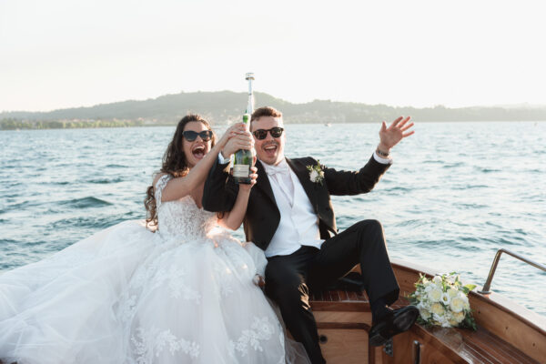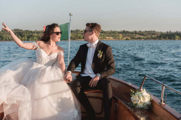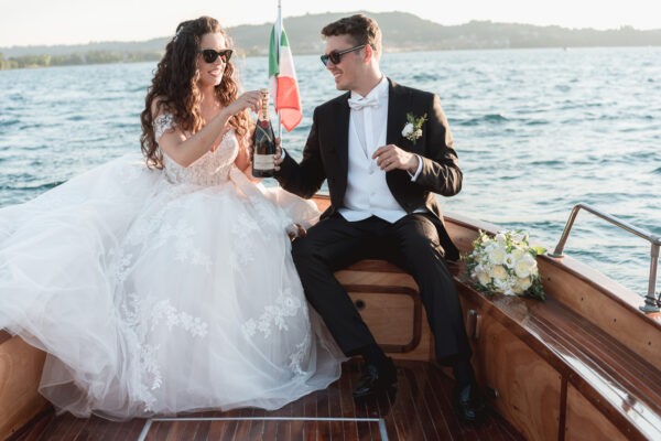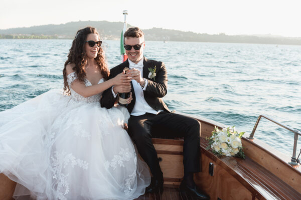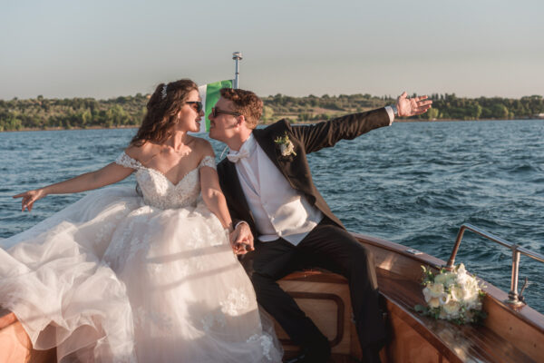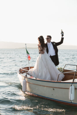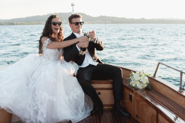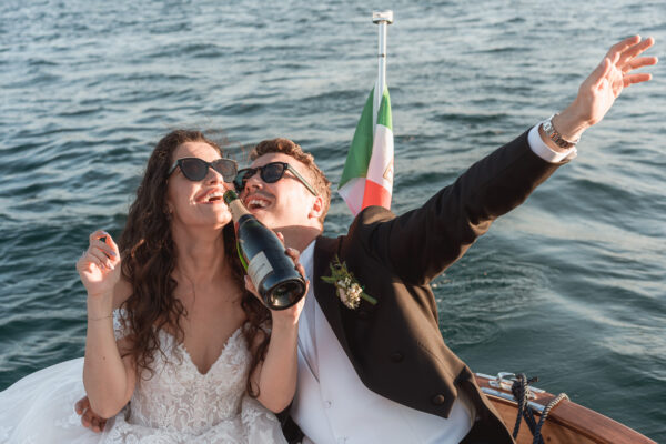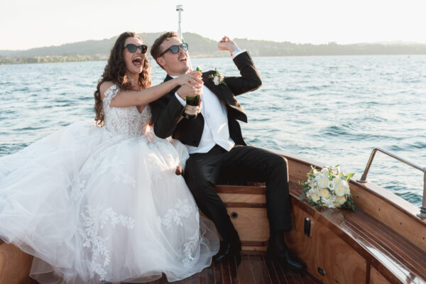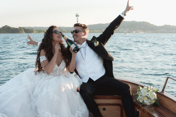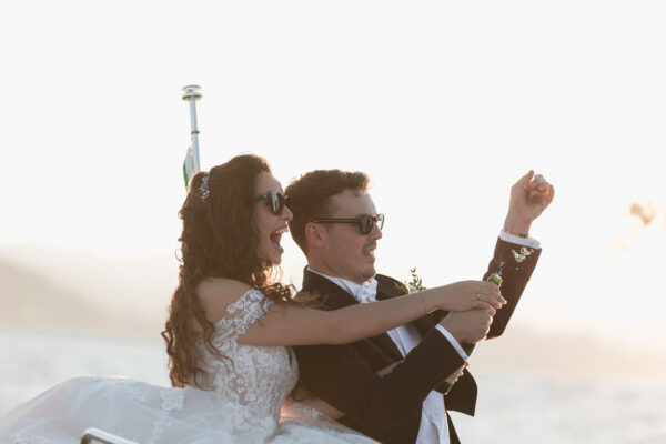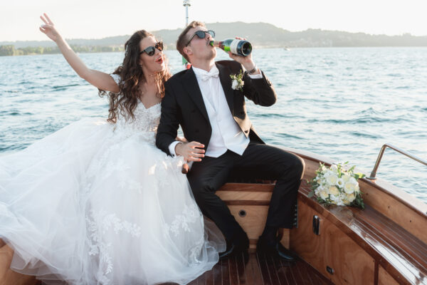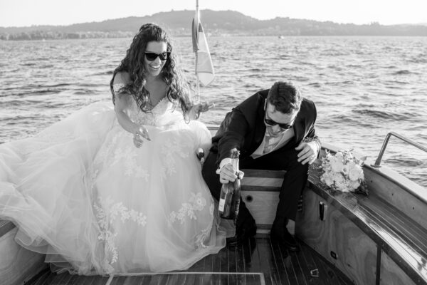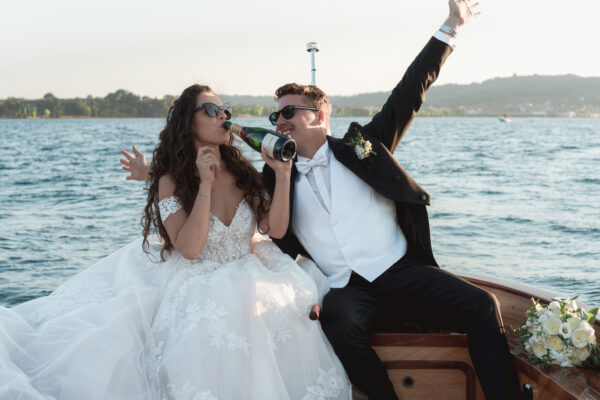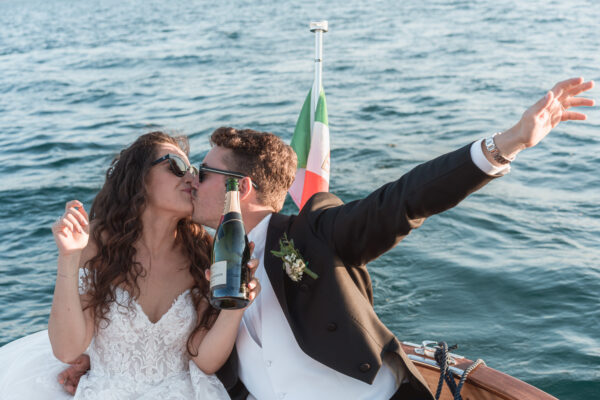 Durante le foto in barca A&G hanno portato i loro occhiali da sole e stappato una bottiglia di champagne, ricordo benissimo l ‘aria che si respirava quella giornata, era densa di aspettativa, elettricità nell’aria, G era carichissima, non vedeva veramente l ora di viversi questa giornata progettata sognata con un duro lavora di organizzazione assieme ad A per quasi un anno. i matrimoni dove c’è e si percepisce la voglia di festeggiare sono sempre i migliori.