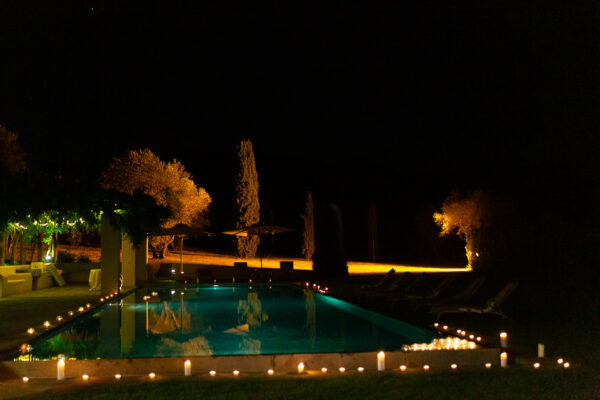 La location prima una bigattiera, per la produzione dei bachi da seta, oggi è una Location bellissima immersa nel verde, con il sole che tramonta ed la illumina tutte le sera di una bellissima luce dorata.