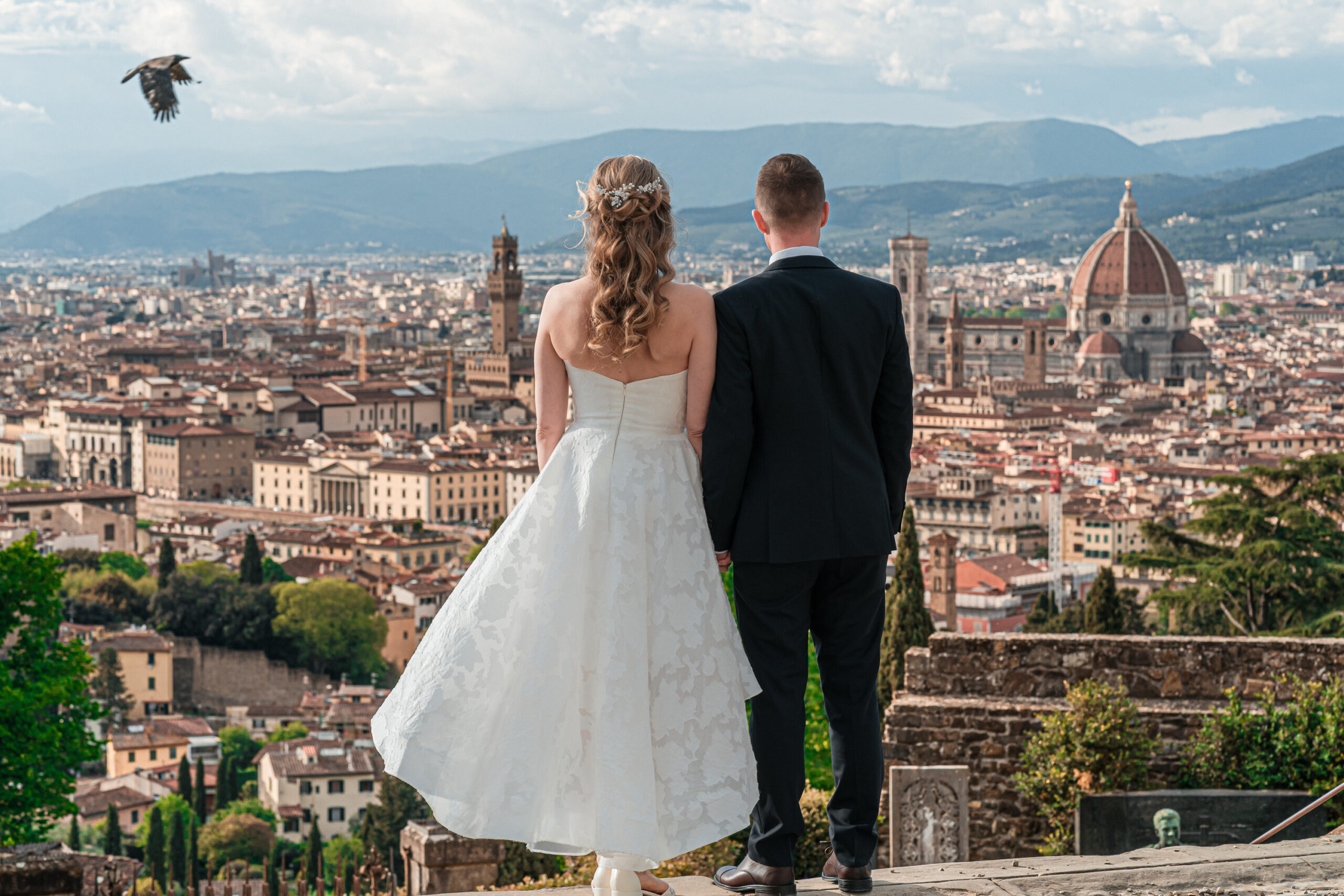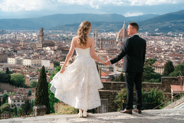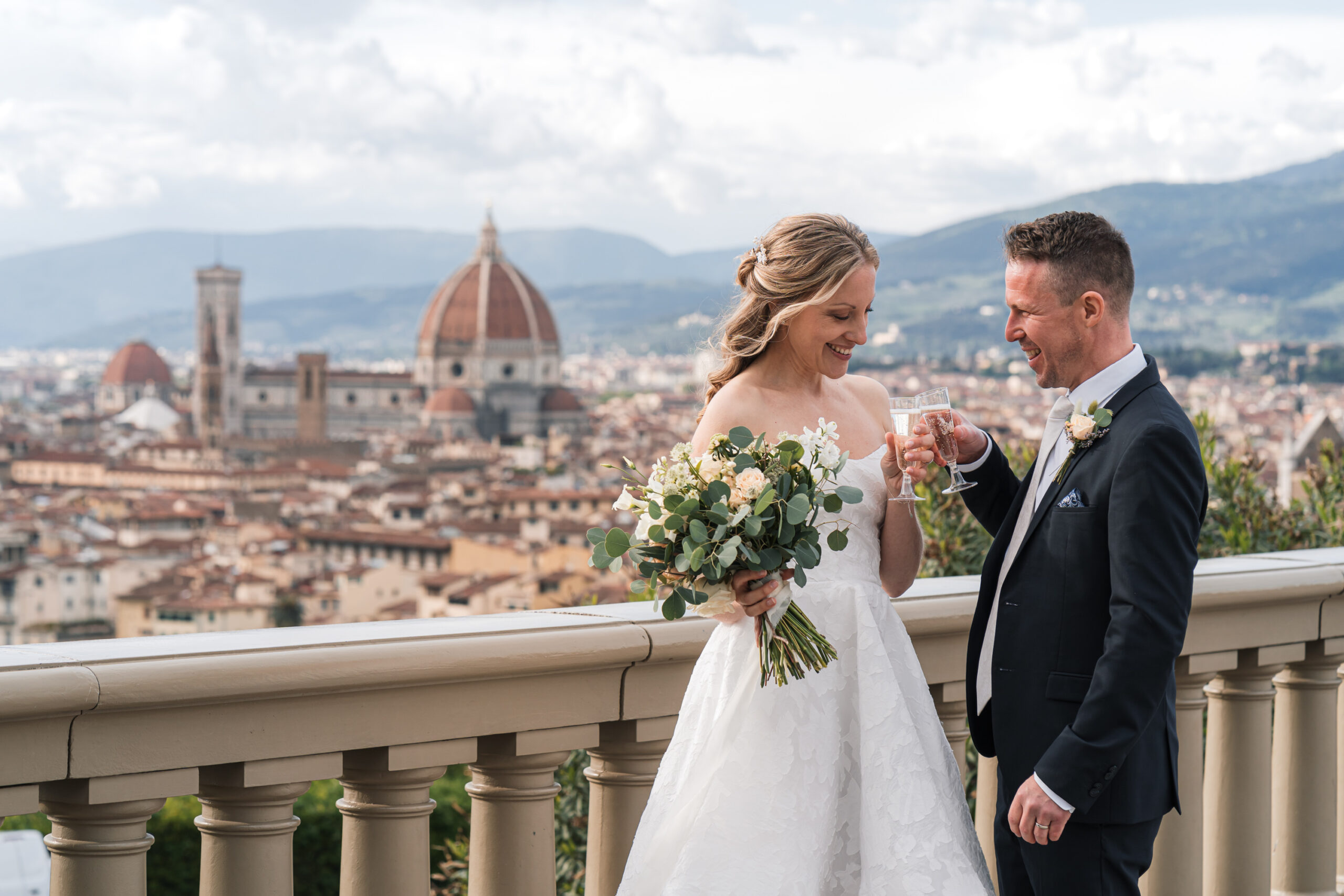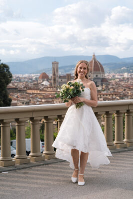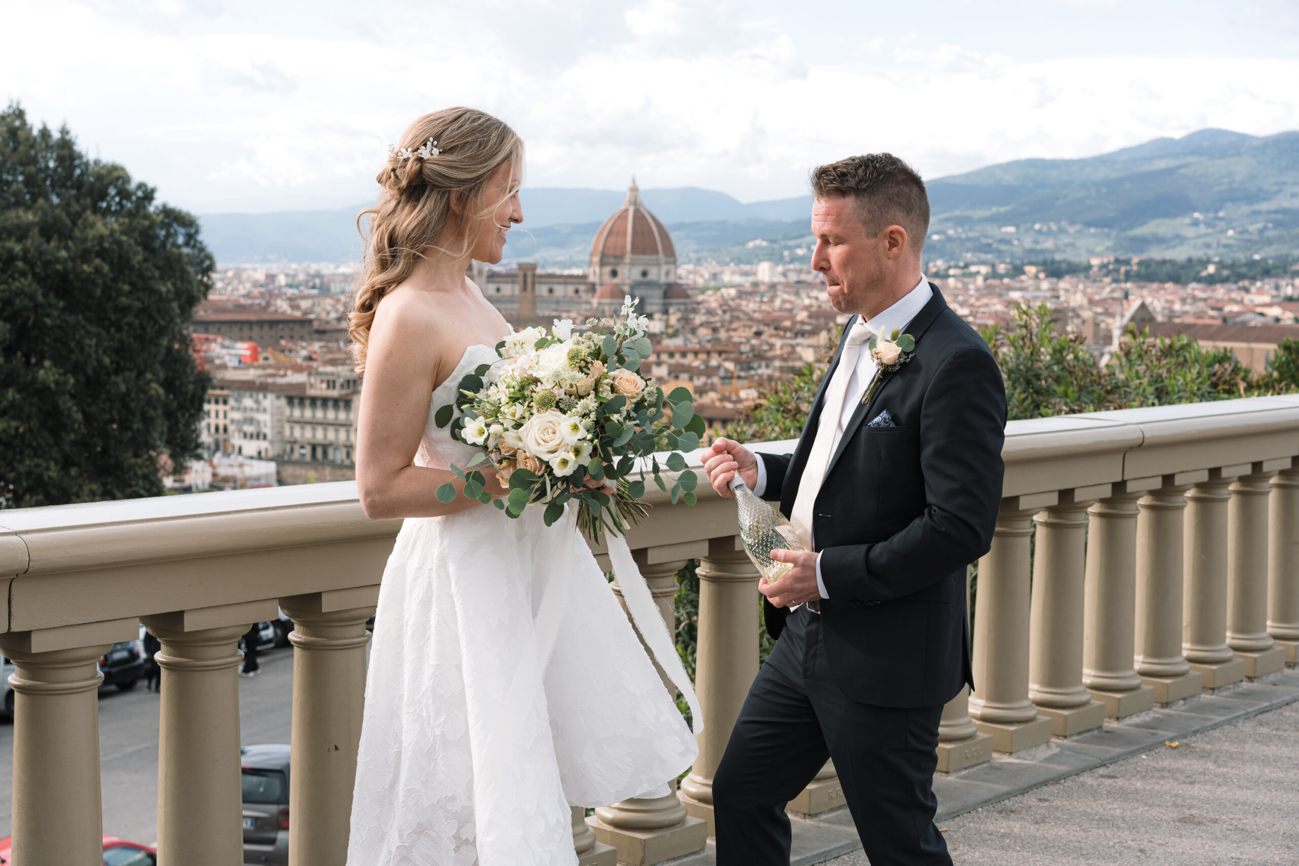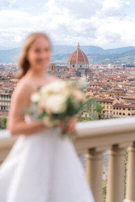 Wedding Photographer Florence TuscanyFlorence, the capital of Tuscany, is home to many masterpieces of Renaissance art and architecture. One of the most famous places is the Duomo, the cathedral with a tiled dome designed by Brunelleschi and Giotto’s bell tower. The Accademia Gallery displays Michelangelo’s sculpture of David while in the Uffizi Gallery there are The Birth of Venus by Botticelli and the Annunciation by Leonardo da Vinci.