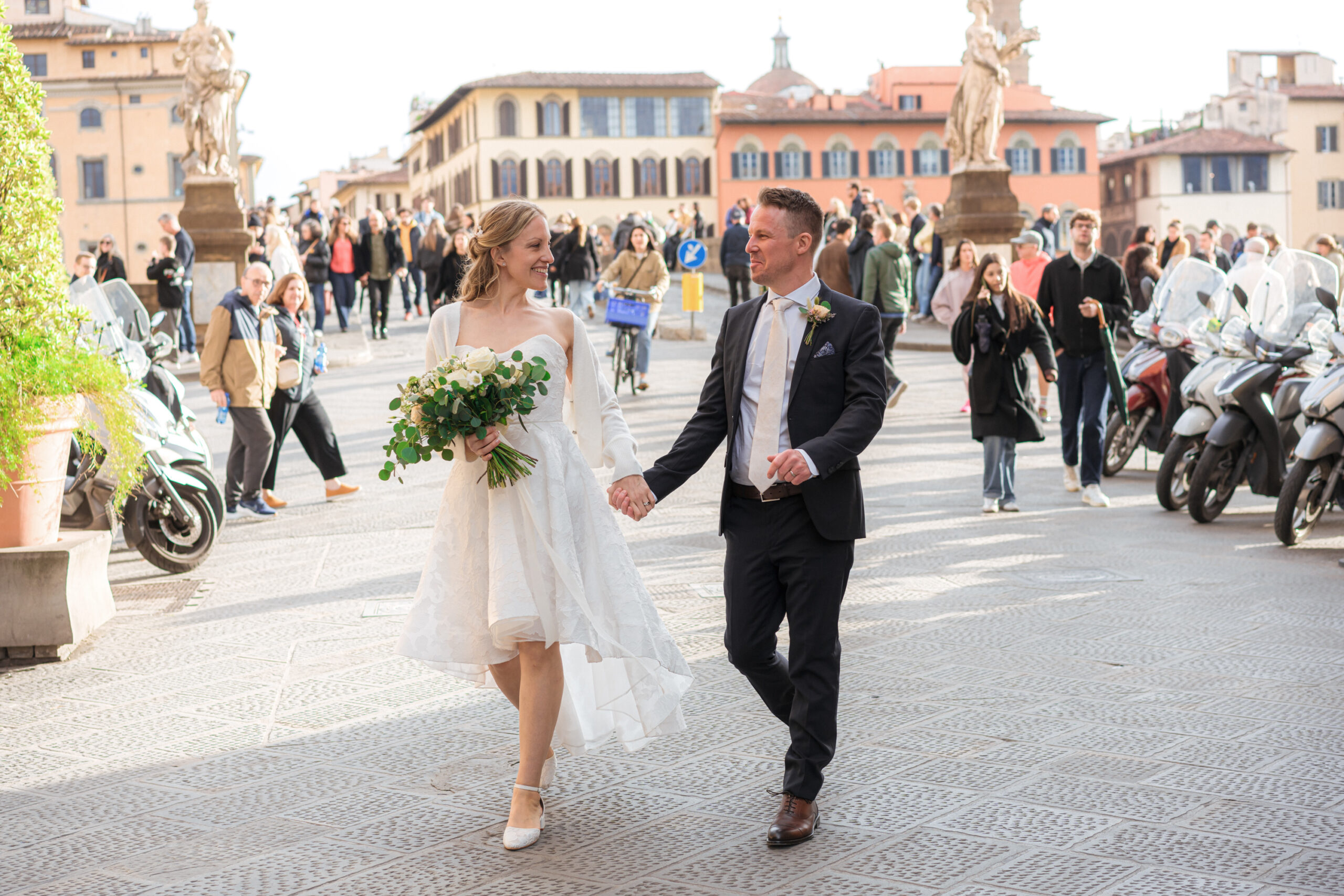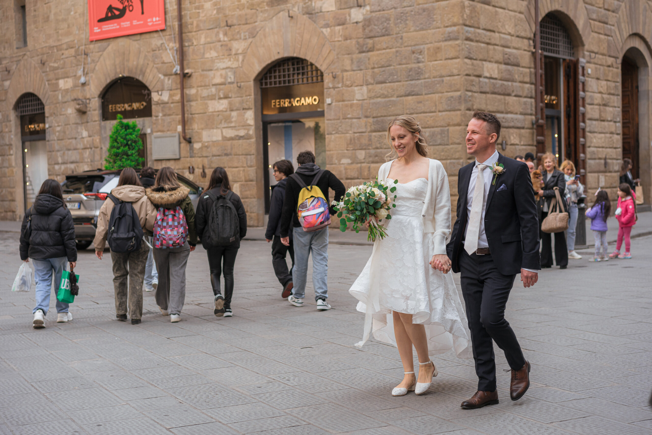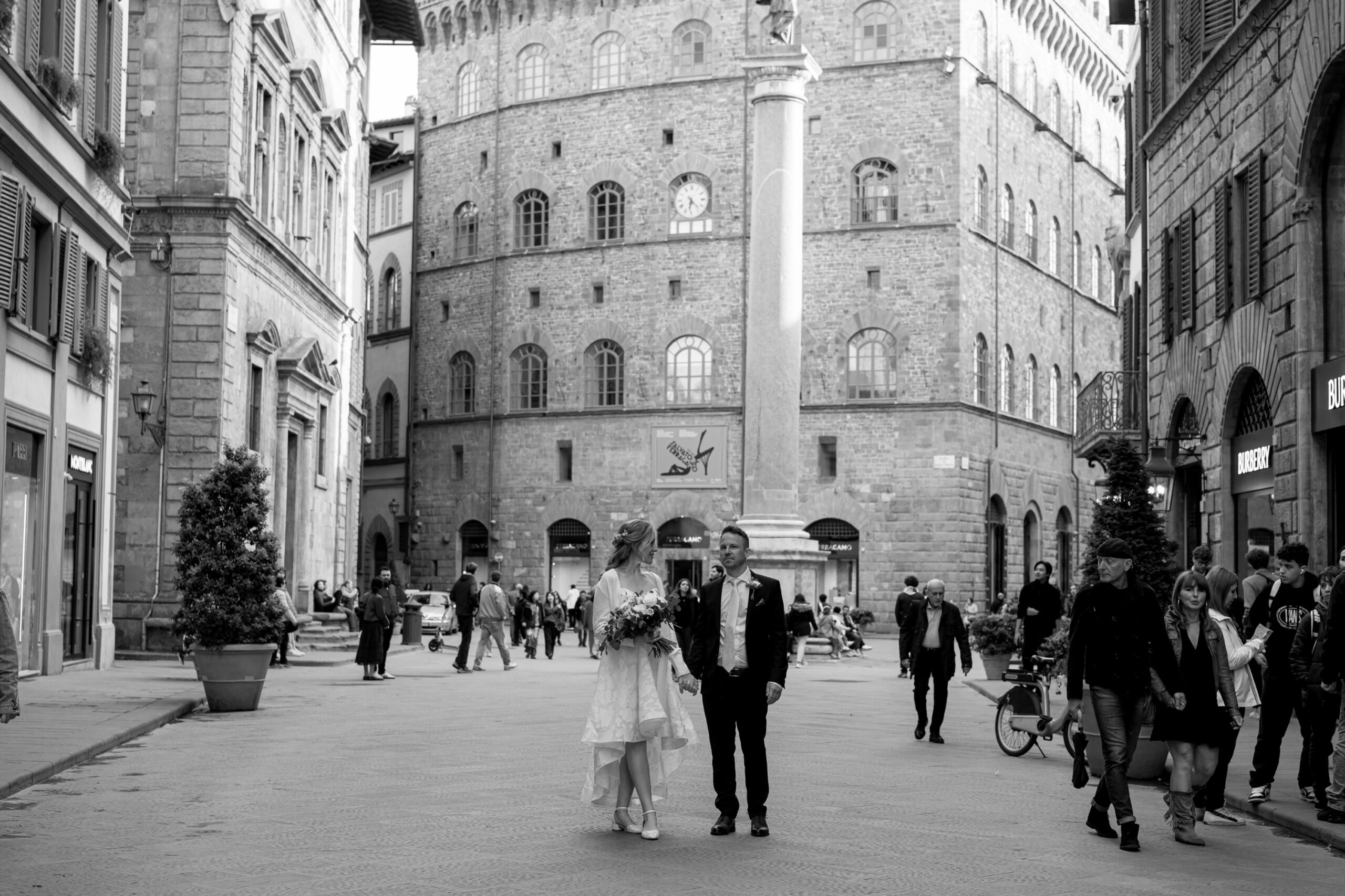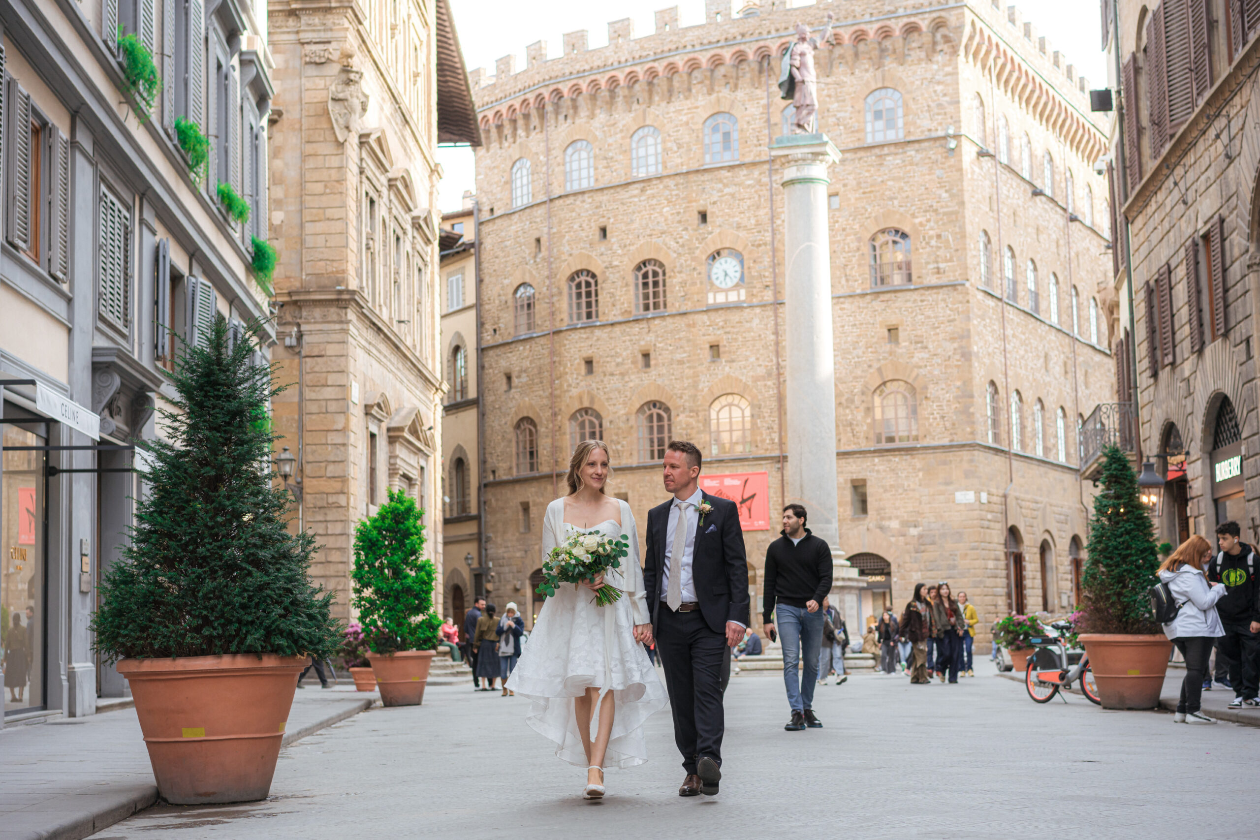 Wedding Photographer Florence TuscanyFlorence, the capital of Tuscany, is home to many masterpieces of Renaissance art and architecture. One of the most famous places is the Duomo, the cathedral with a tiled dome designed by Brunelleschi and Giotto’s bell tower. The Accademia Gallery displays Michelangelo’s sculpture of David while in the Uffizi Gallery there are The Birth of Venus by Botticelli and the Annunciation by Leonardo da Vinci.